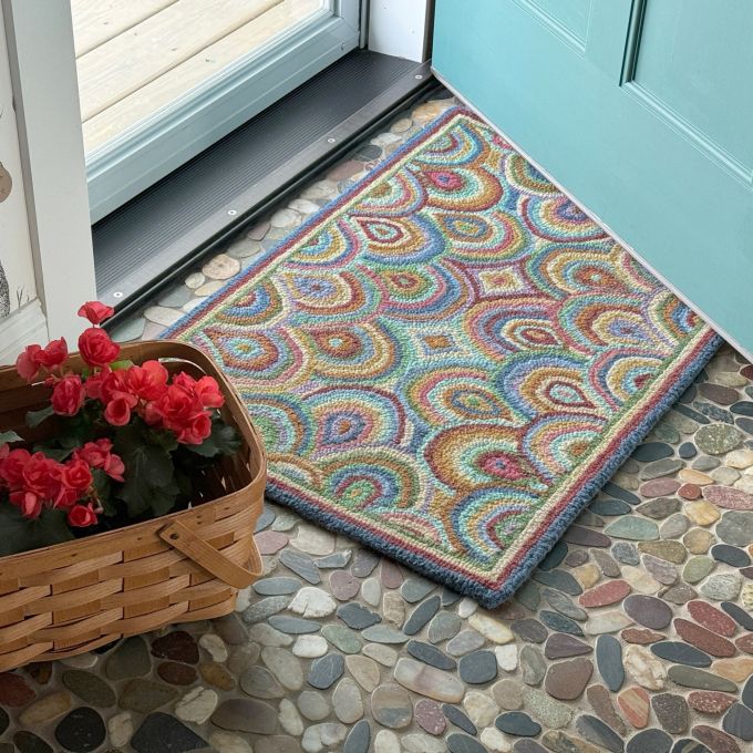 Timeless hooked rug designs always inspire us, and our Rainbows rug is no exception. We used a broad palette of specially-dyed, thick wool yarns to create an overall vintage feel flexible enough to fit just about any color scheme.