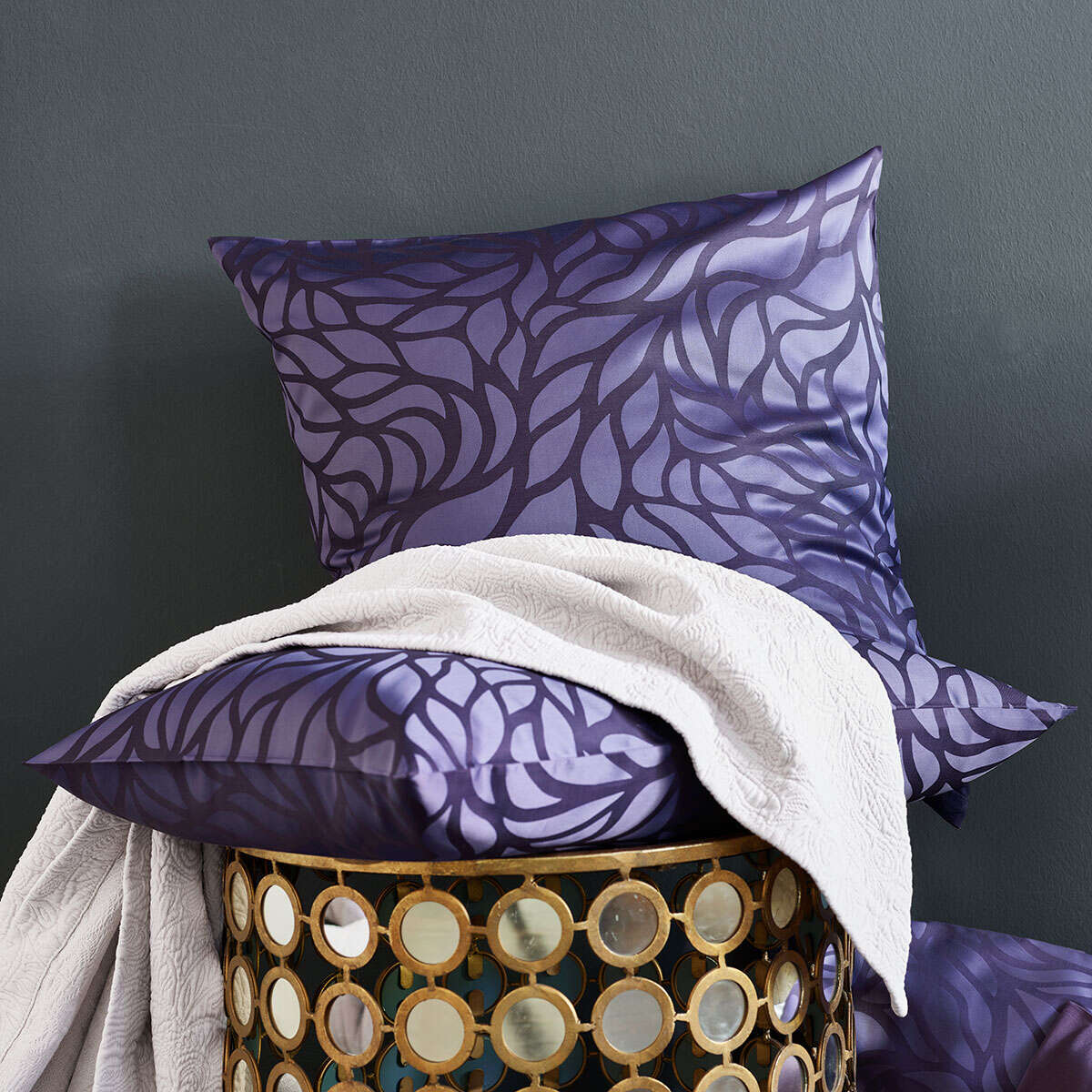 The Rami bedding design is surprising, with its exquisitely curving floral vines and boughs trailing across the entire scene as if growing along a wall. The monochrome background is elegantly wreathed in shiny satin veins. Rami is available in two luxurious, elegant colors.