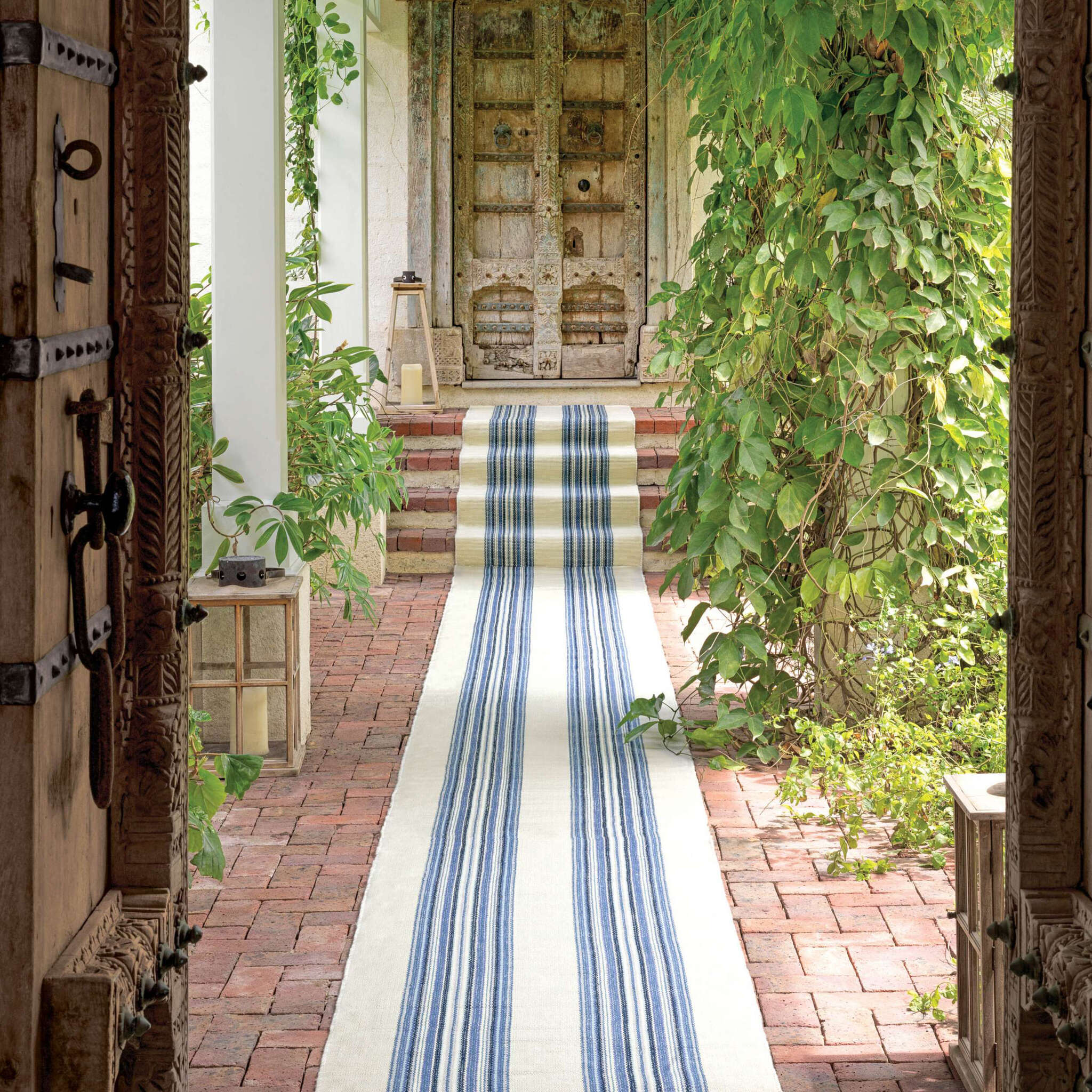 Born to run, these energetic rugs will outpace any other stripe on your floors or stairs. Woven in resilient and washable recycled P.E.T. performance threads and featuring a multitude of tonal colors crammed into exuberant mini striped vertical blocks, this durable and fade-resistant rug feels as soft as cotton but will stand up to whatever everyday life brings its way.