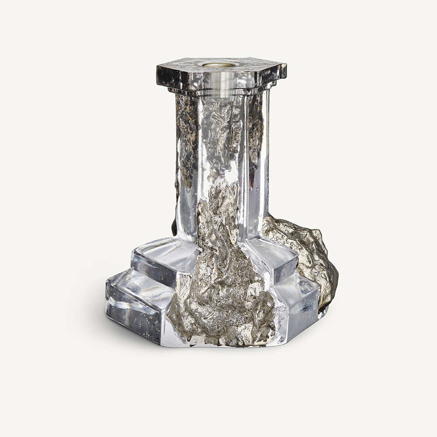 Rocky Baroque is a rebellious take with ancient roots. Monumental contours meet raw, jagged surfaces in this collection of vibrant candle holders. The item from Kosta Boda resides in the borderlands between sculpture and utility object, a recurring theme in artist Hanna Hansdotter's design. Humor and irony are other tools used to interpret and challenge authoritarian principles. The result is its own genre – Rocky Baroque.