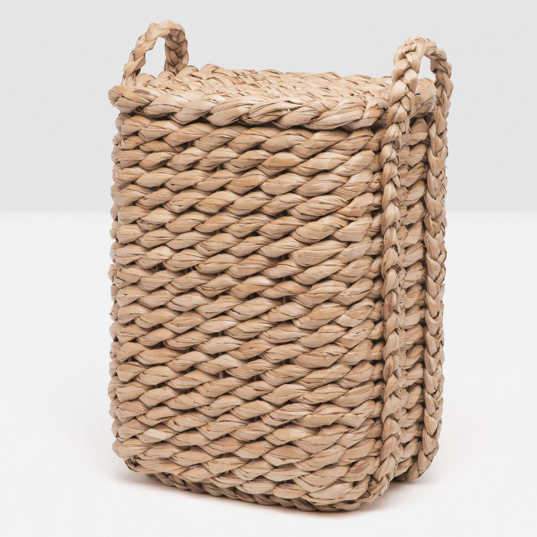 Twisted seagrass hamper with handles.