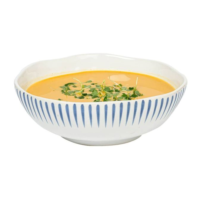 From our Wanderlust Collection - Equally stunning and simplistic, radiant stripes in breezy shades of blue adorn this dinnerware collection.