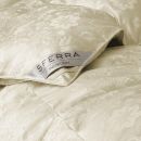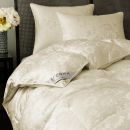 Fiber: European white goose down. 900+ Fill power. 434TC. 100% German-woven silk jacquard.