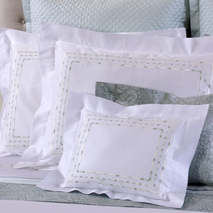 Quilt and Coverlet: Knife-hedge hem. Available also Scallopped hem with 20% up-charge.
