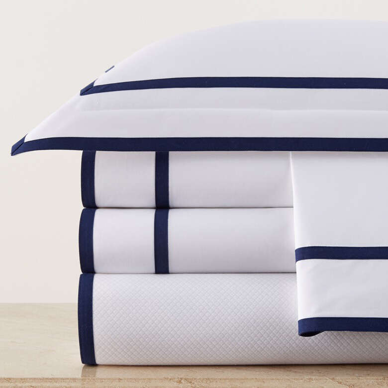 Sheet Sets come as the image is displayed. If you choose products with a 4" cuff - Products will have the same colour trim on them but in a 4" Band at the edge
