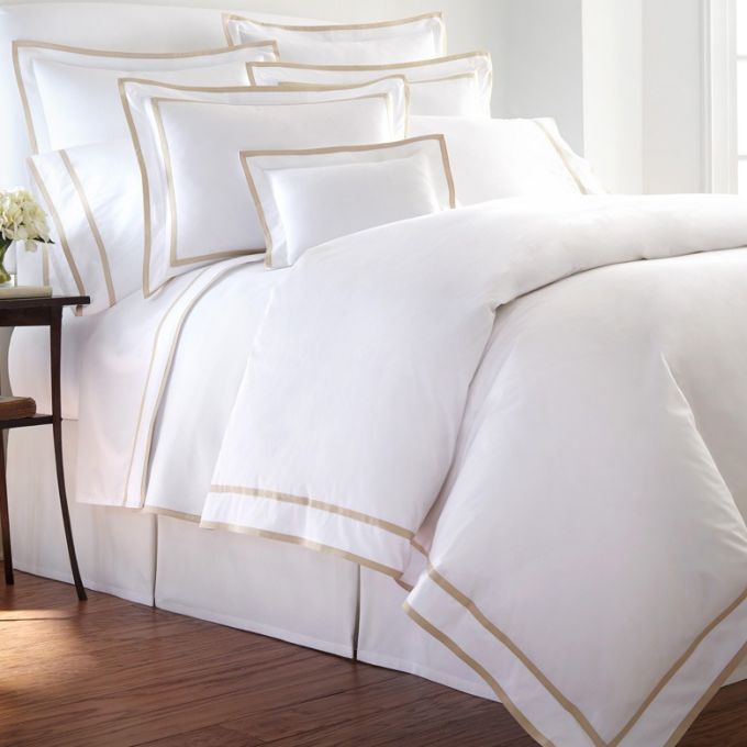 200 thread count Egyptian Cotton Percale in White and Ivory with your choice of over 50 tape trim colours.
