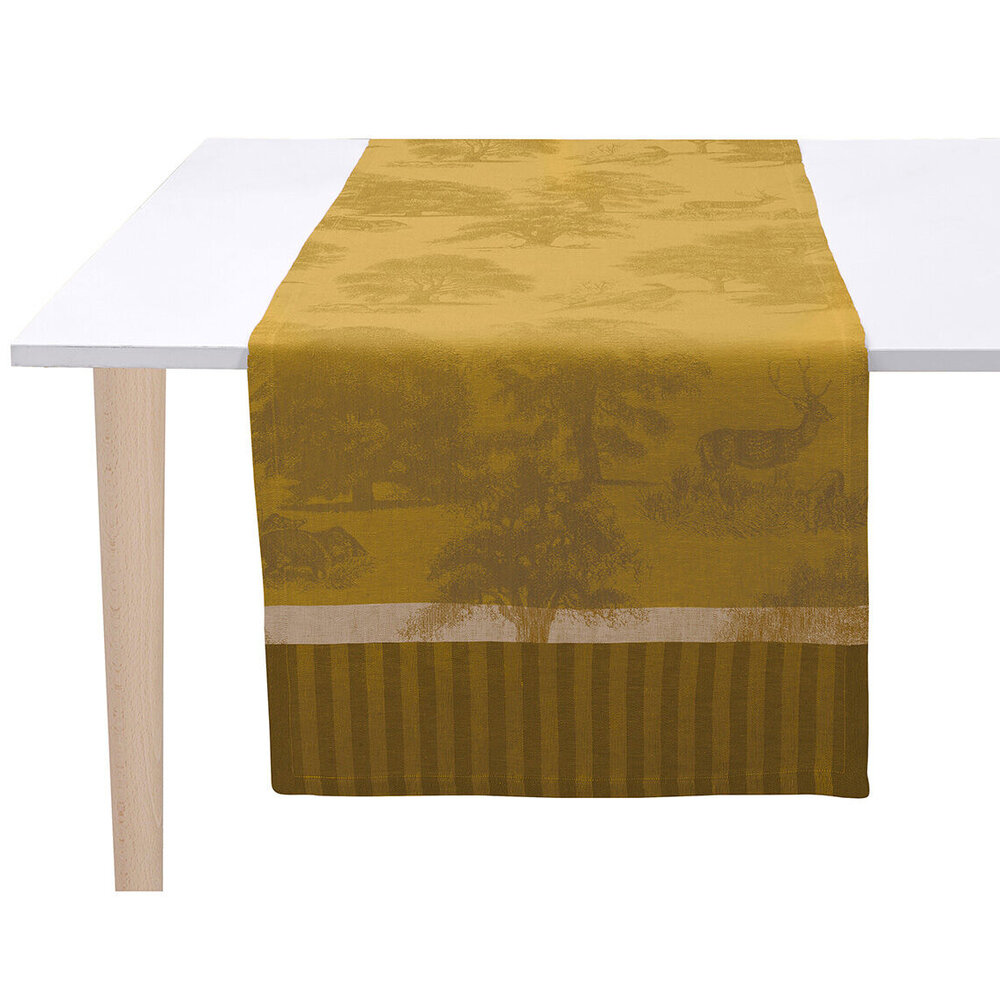 Our Souveraine collection will immerse you in the heart of a magical, enchanting forest. Let yourself be seduced by our 100% linen tablecloth and its panorama of greenery. This delicate tablecloth is like a toile de Jouy, where pheasants, wild boar, fawns and hares bask in the midst of luxuriant vegetation abounding in beauty. To complete this universe, you can opt for napkins from the same collection!