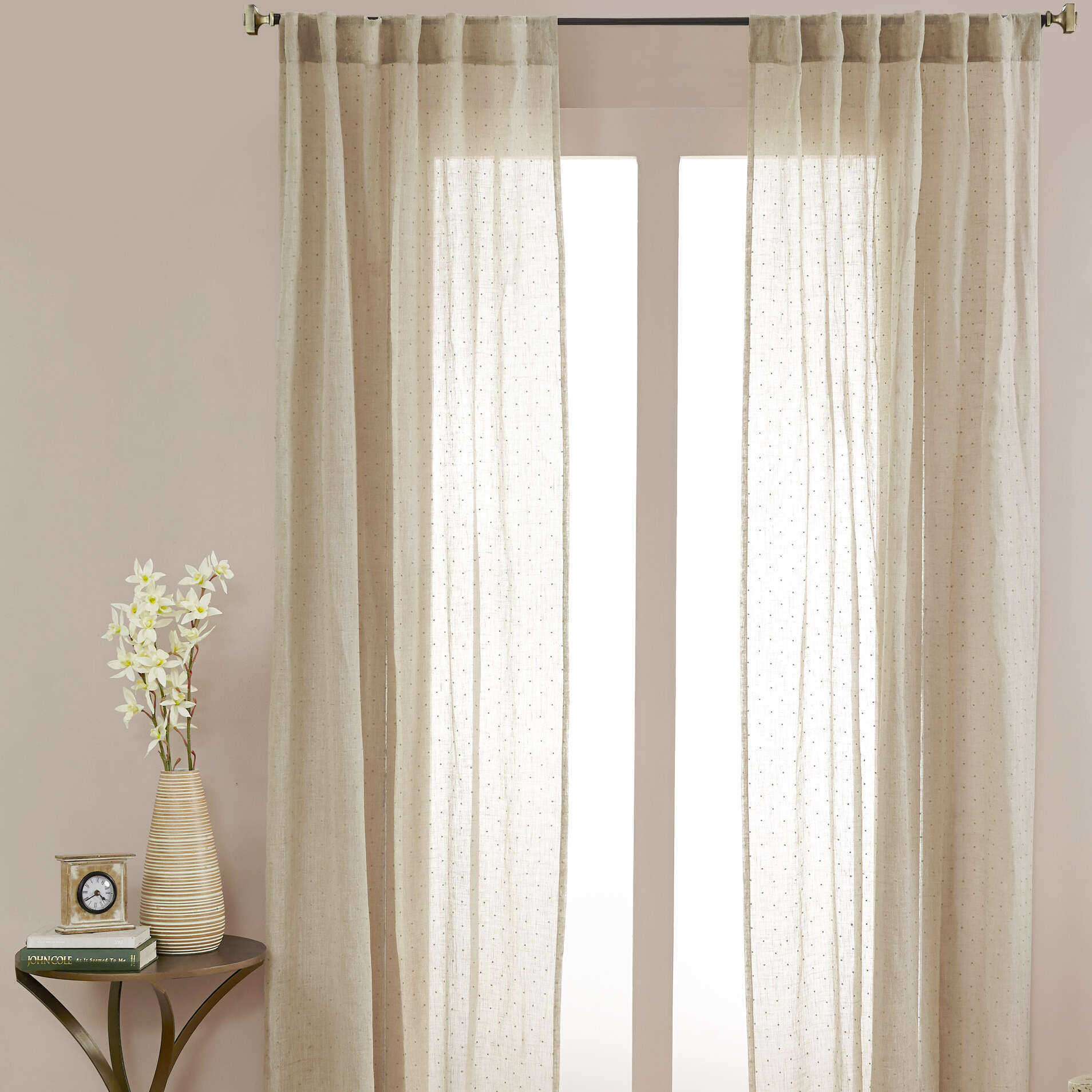 Presenting Swiss Dot Linen Sheer Curtain. A design that lauds the natural texture of linen by subtly filtering natural light and enabling privacy. The union of this sheer design and its natural color is a classic, thus fitting into multiple mood settings from urban chic environments to opulent traditional settings.