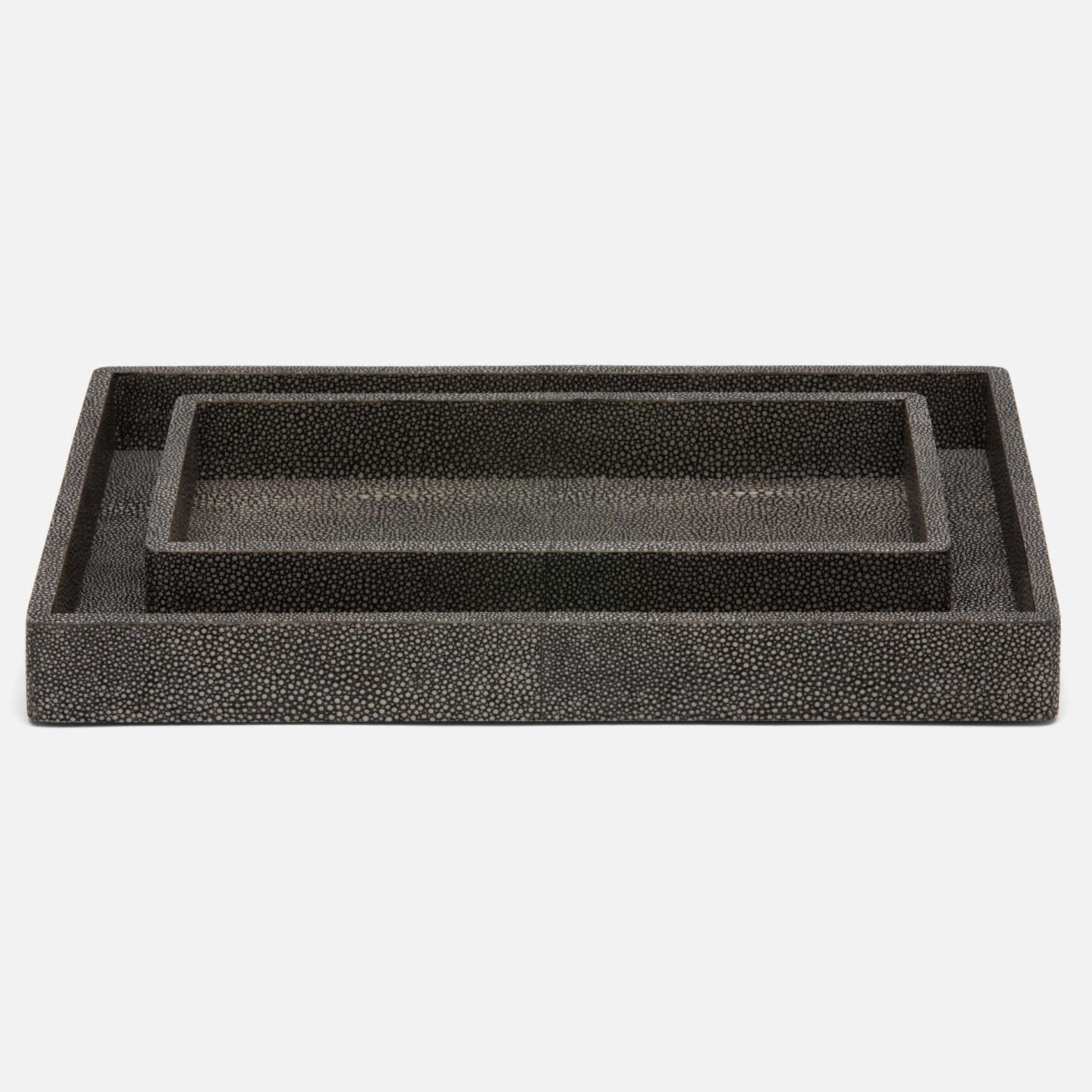 Stunning bath collection in our signature faux shagreen with an elevated rounded corner detail. Appropriate for the most discriminating bathrooms.