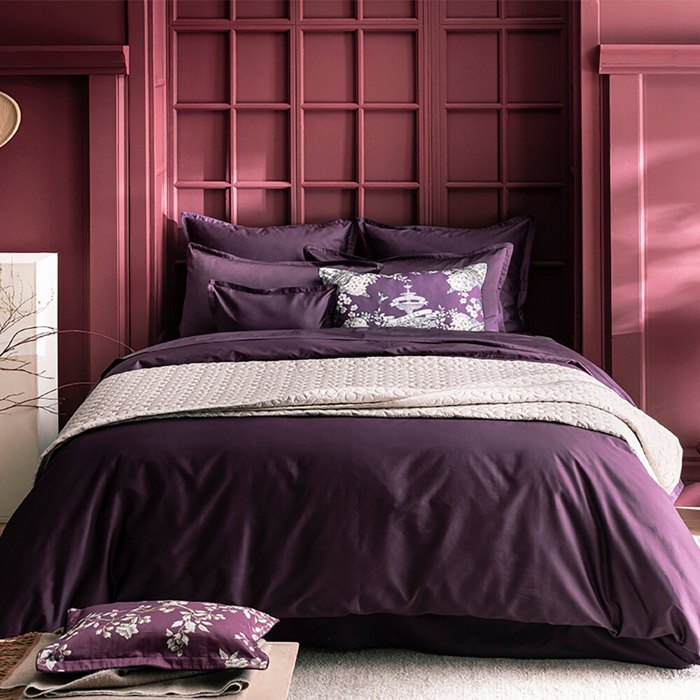 Duvet Cover: Plain dye with organic cotton sateen ribbon.