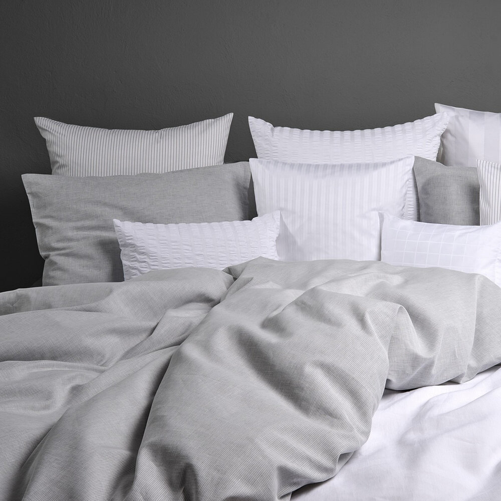 This premium bed linen reinterprets the classic check. The design fuses tradition with modernity, while a variety of sheen effects exude cool elegance. Its combination of warp satin and weft satin makes for a wonderful interplay of different nuances. We only use carefully chosen long staple cotton for the ultra-fine yarn. Premium raw materials and a superior finish make TIMES SQUARE an exclusive, classic bed linen design.