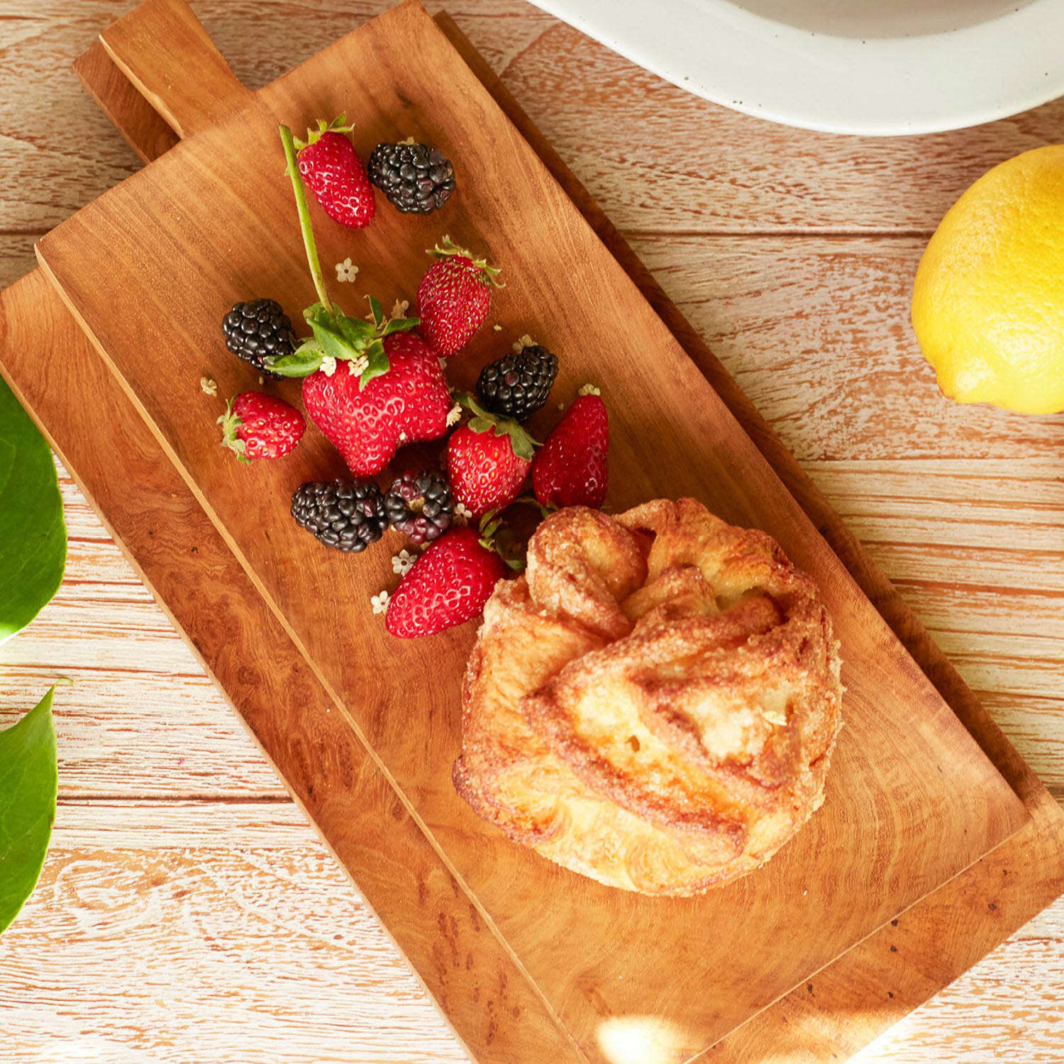 Do you crave simple classics? With the overabundance of “fancy” wood platters, the retro and modern Titus has a blocky, graphic shape that’s just for you. Small details like the slightly concave top (perfect to prevent items from rolling or spilling off) and the rich, natural teak graining give the Titus its personality.