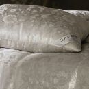 Ticking: 434TC 100% Silk Jacquard, woven in Germany.