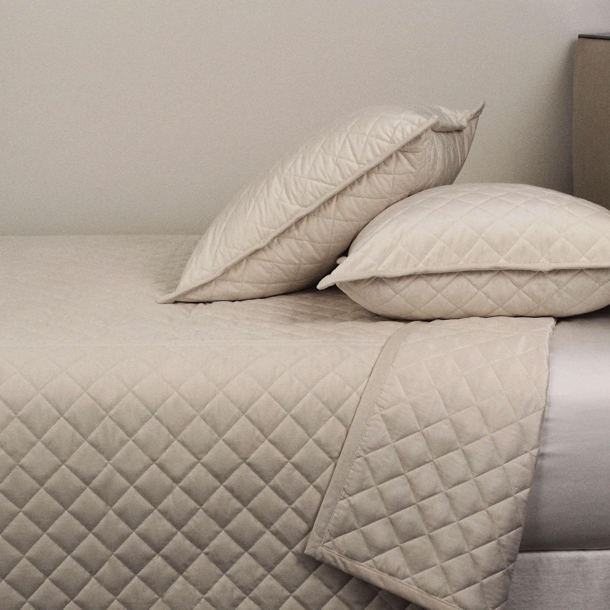 Quilted Velvet is rich in look and feel. Diamond quilting is classic, versatile and oh so chic. Its sumptuously soft handfeel is irresistible and cozy.
