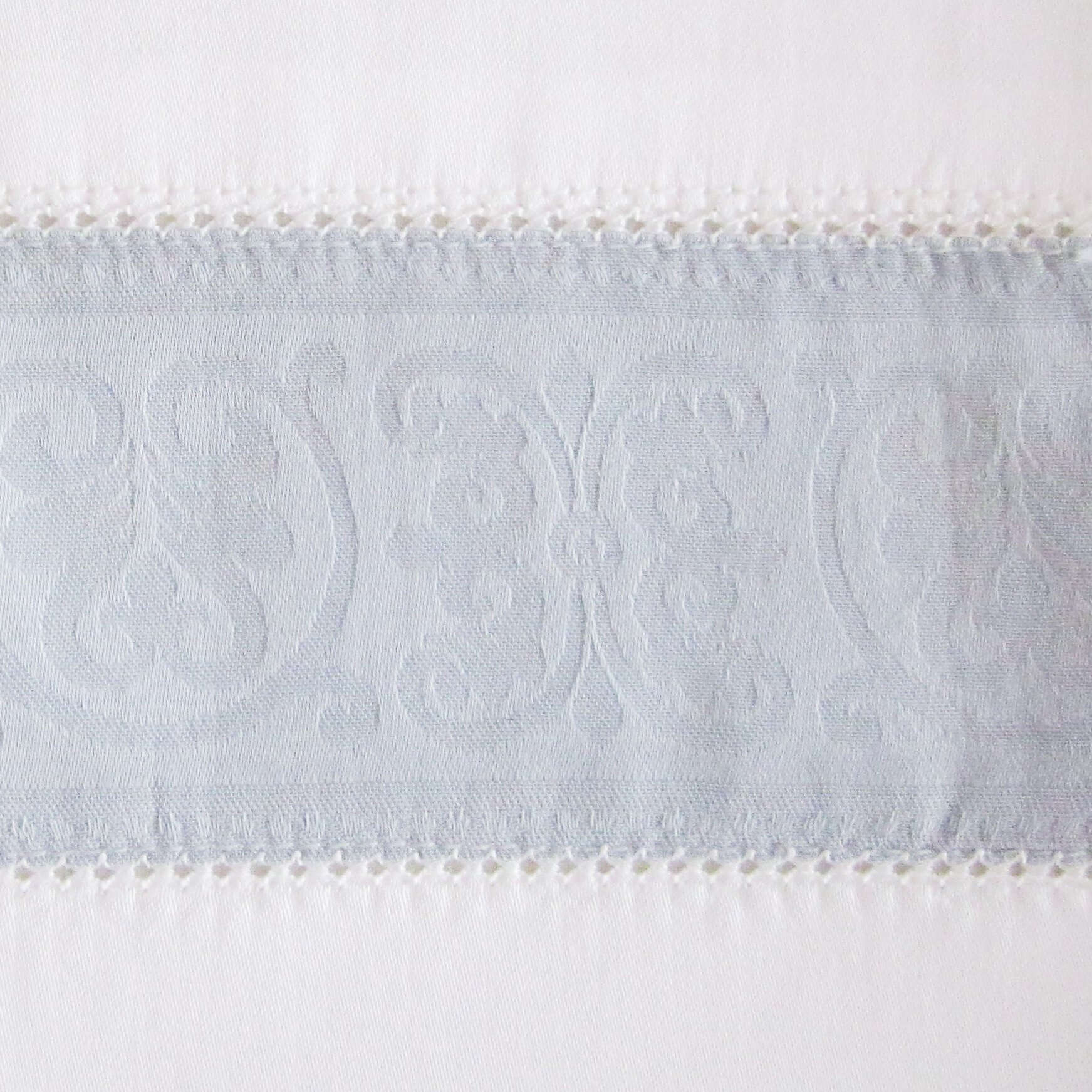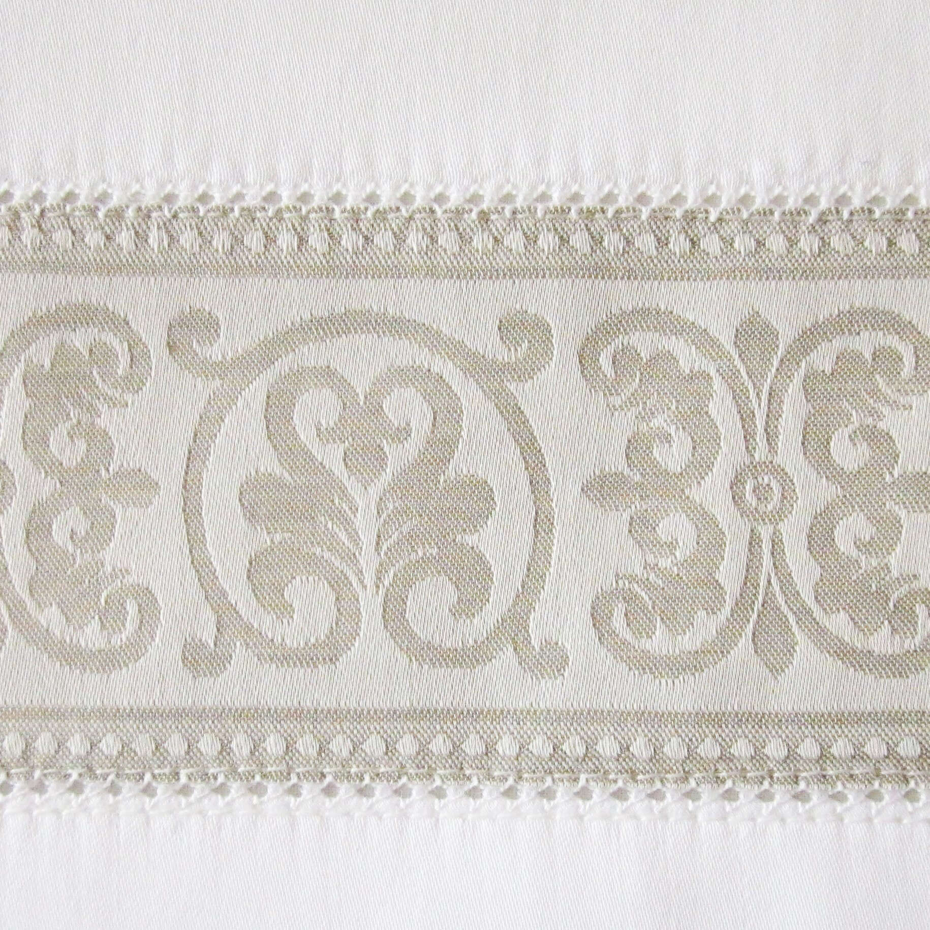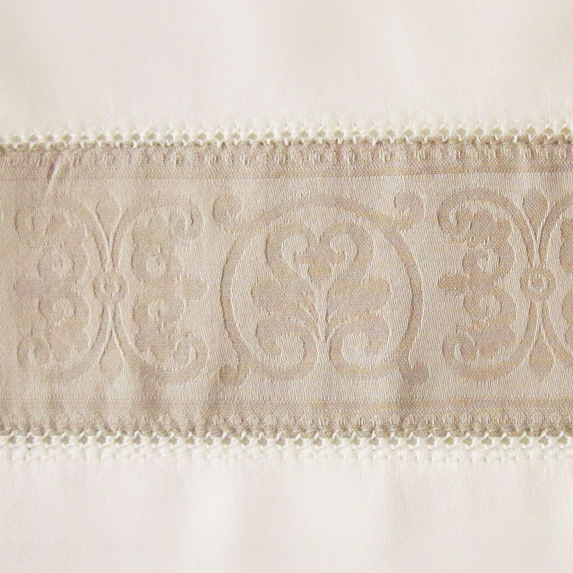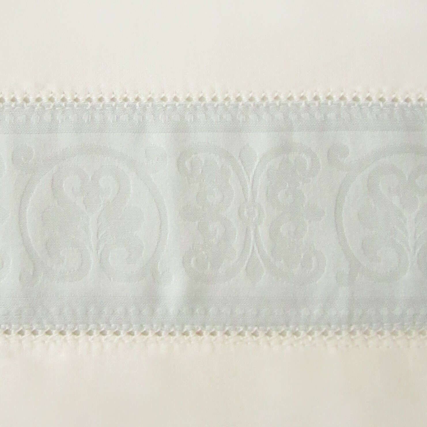 This exquisite jacquard is applied as an inset to our Royal Sateen and finished with a tone-on-tone, hand-guided hemstitch, for an ensemble that is soft, sensuous and stunning.