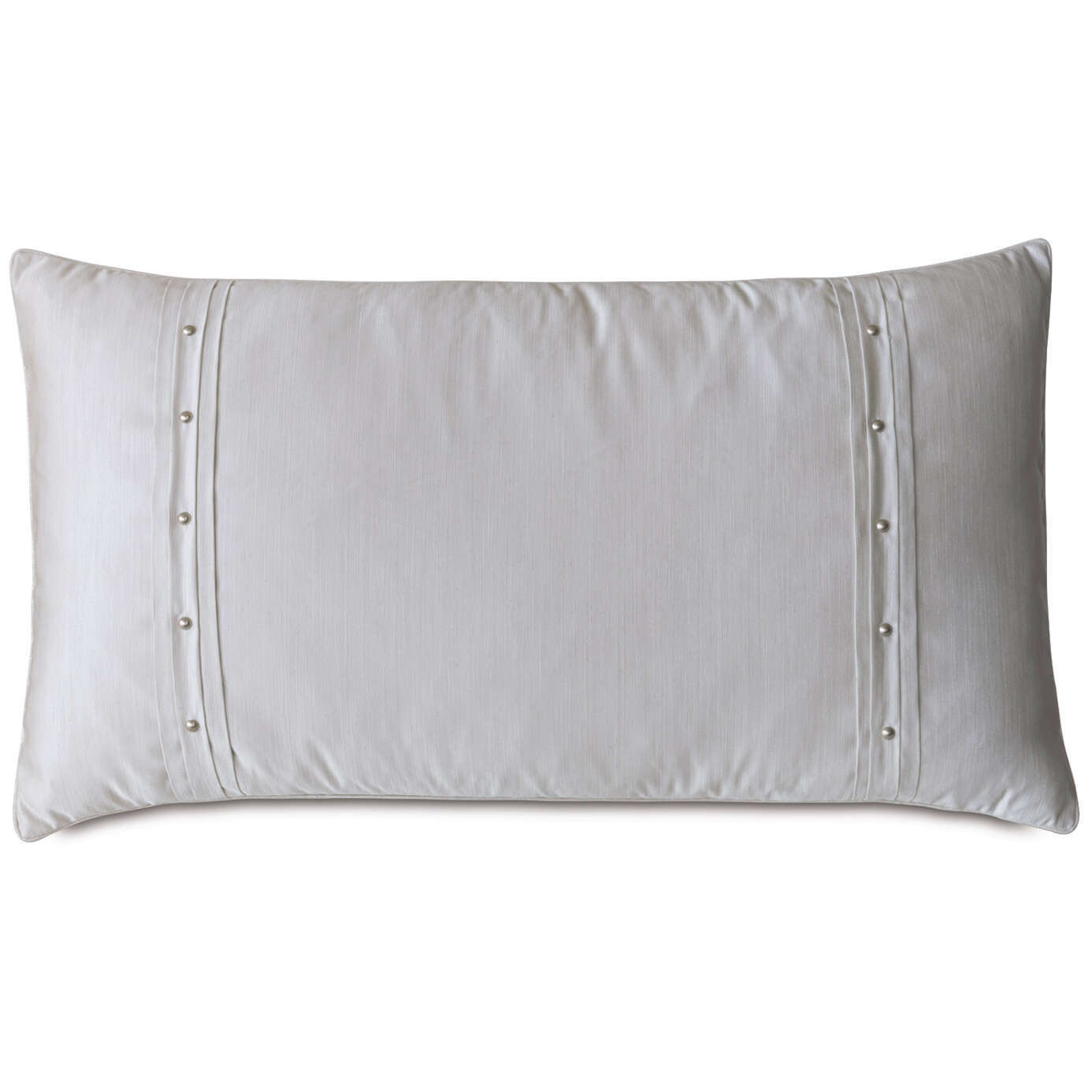 Sham: Pleats and nailhead accents on fabric face. Self-backed in Lucent Silver. Mini welt edge finish.
