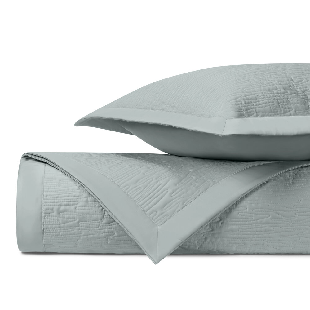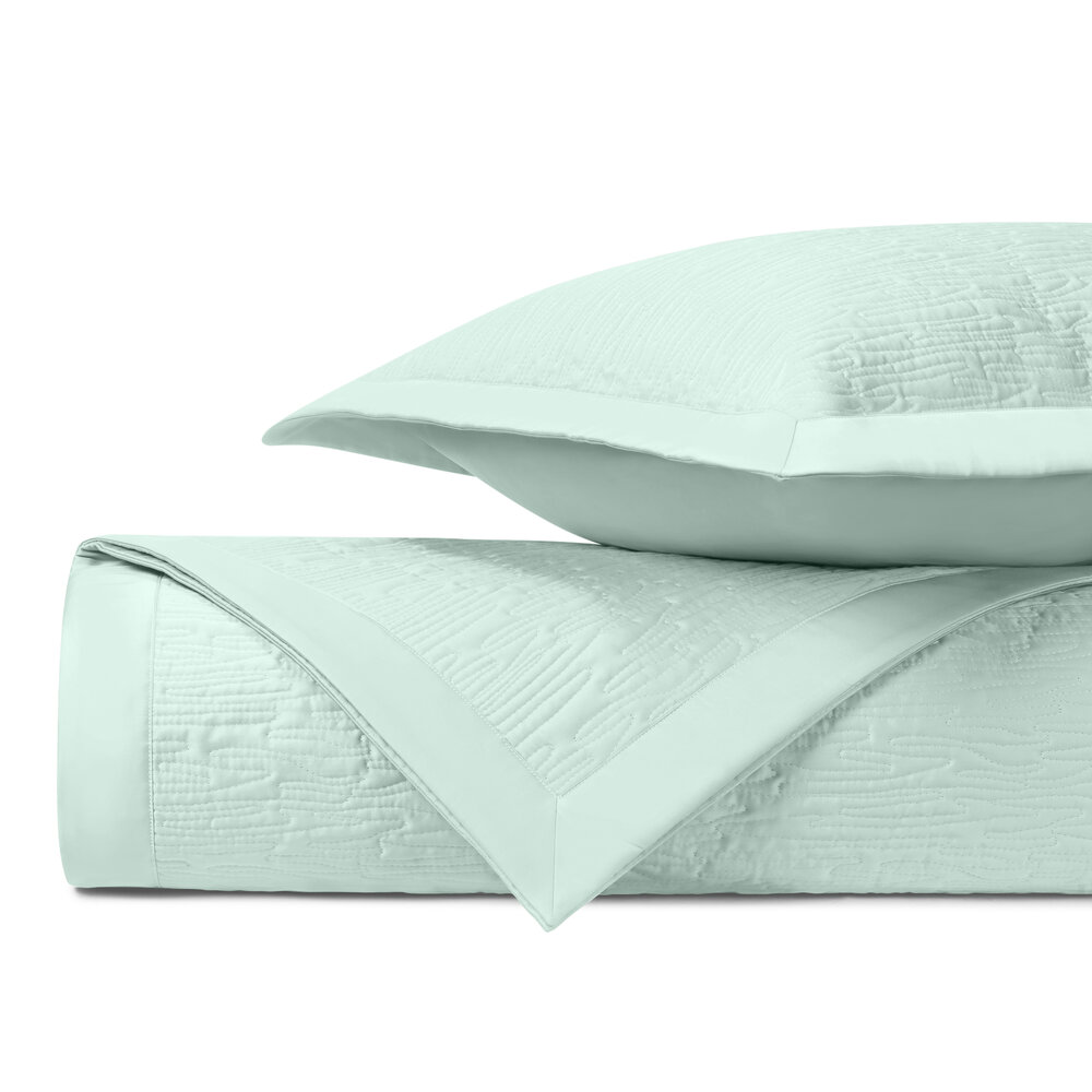 Our classic royal sateen quilted coverlets, in Wave pattern, are finished with a solid 2" border.