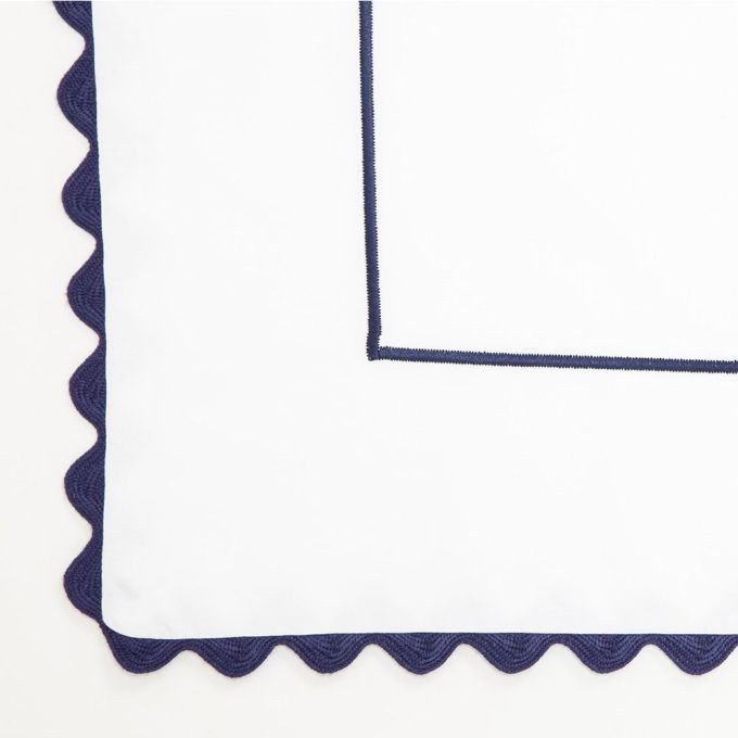Undulating 'ric-rac' trim gives Waves a slightly more informal feel than perhaps a corded or heavily embroidered design. It is elegant and understated but can also be fun and contemporary depending on the trim, which is available in 18 colours, including white. The sumptuous 210 thread count cloth adds to the sense of luxury.