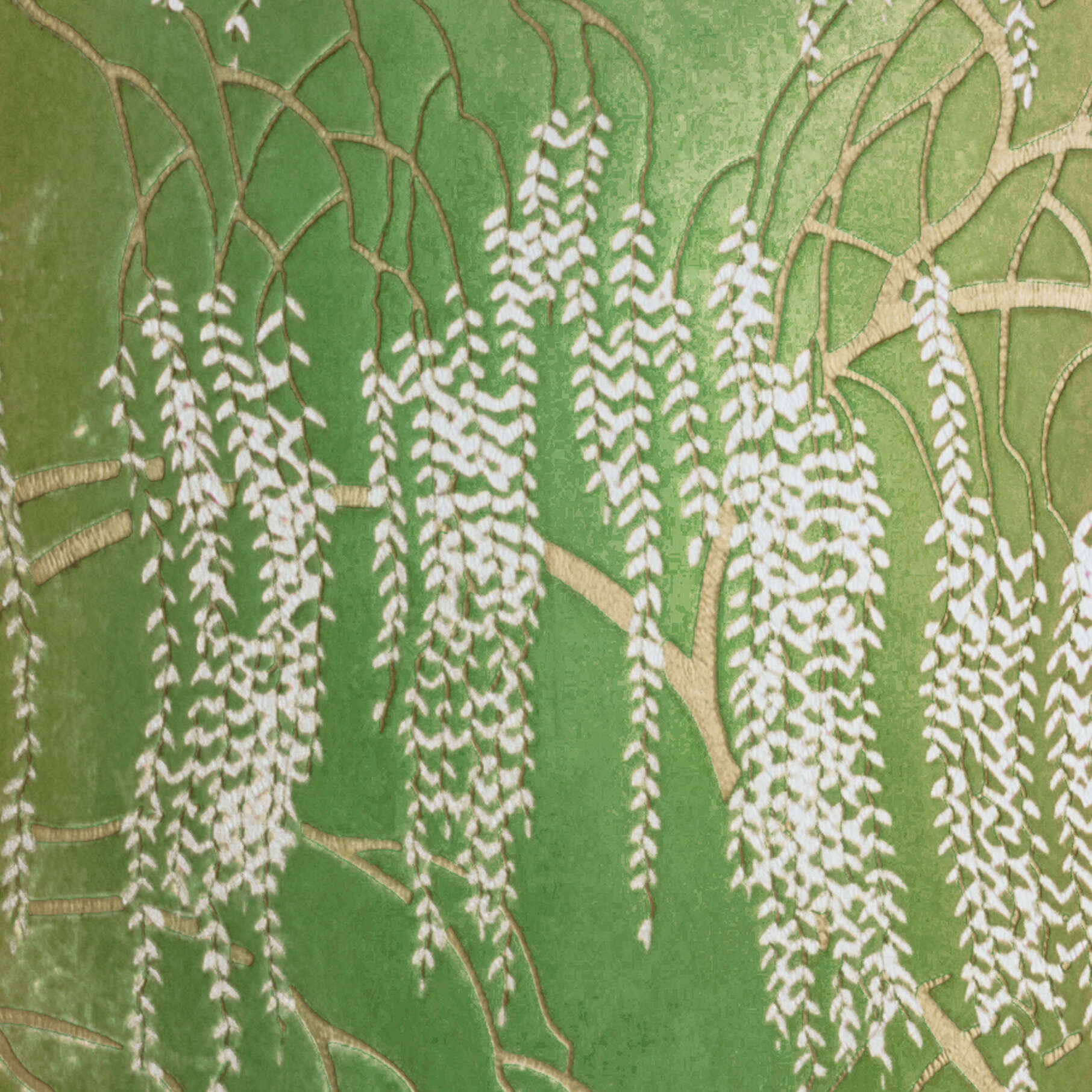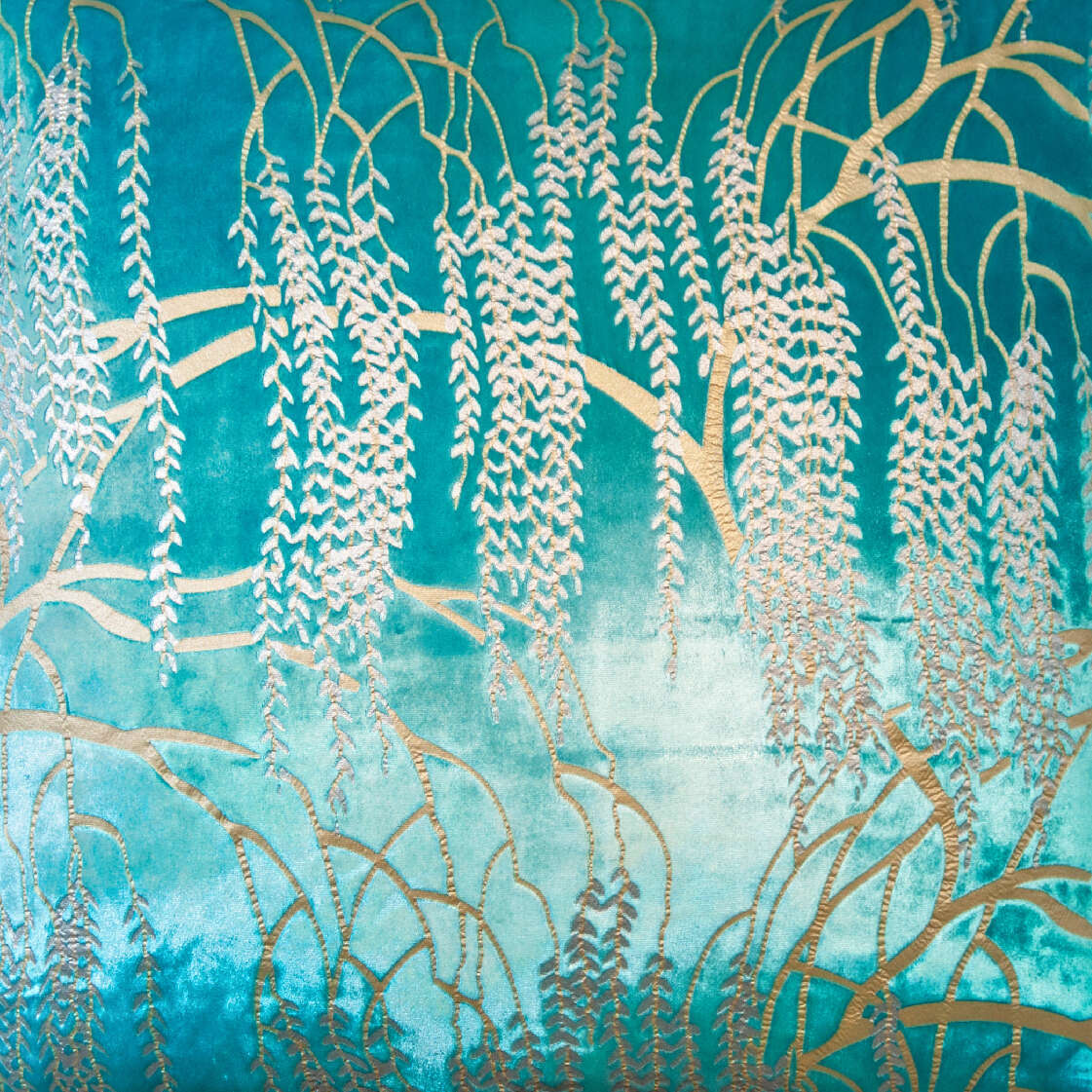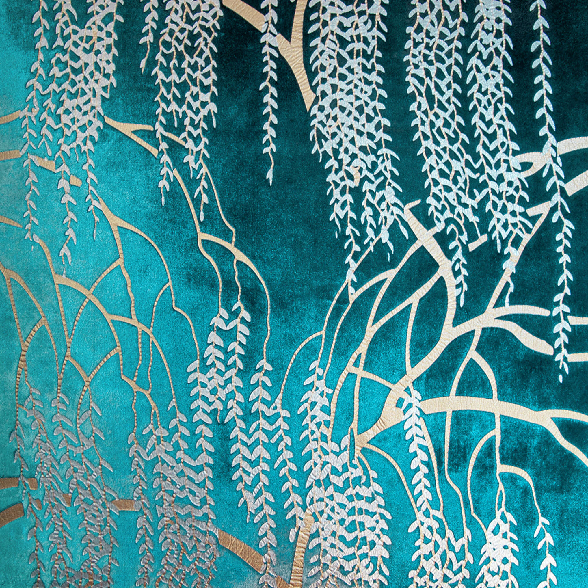 This foliage pattern, both whimsical and elegant, will add an elegant touch to any room. Our metallic pigment prints add new dimension to our lustrous velvets.