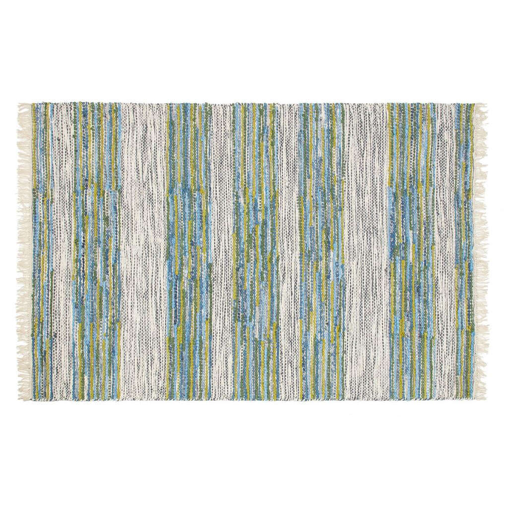 This hand crafted rug is woven using remnant and recycled fabrics creating a truly unique product. Variances in tone and texture are part of the artisanal manufacturing process. Finished with a fringed edge, this stylish interior floor rug has no additional backing but we do advise to use an anti-slip underlay if the rug is placed on a smooth surface.