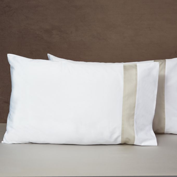 The Aida collection is a timeless contemporary design. Made in Italy from a 300 TC sateen, its soft touch and brightness is a result of the sateen being made from only the finest, longest-staple cotton threads. The modern applied border, available in a variety of colors, makes this collection the perfect match for any style.