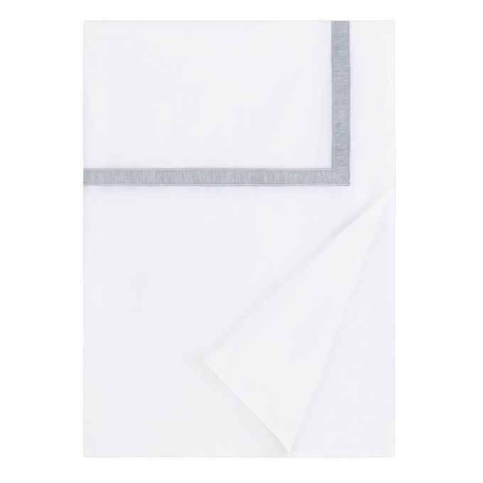 Alina Flat Sheets - solid percale body with a 1" linen sateen appliqué, bordered by tonal satin stitching, along the Euro return.