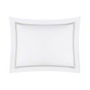Alina Shams - solid percale body and a 1" linen appliqué inset, bordered by tonal satin stitches, along the flange hem.