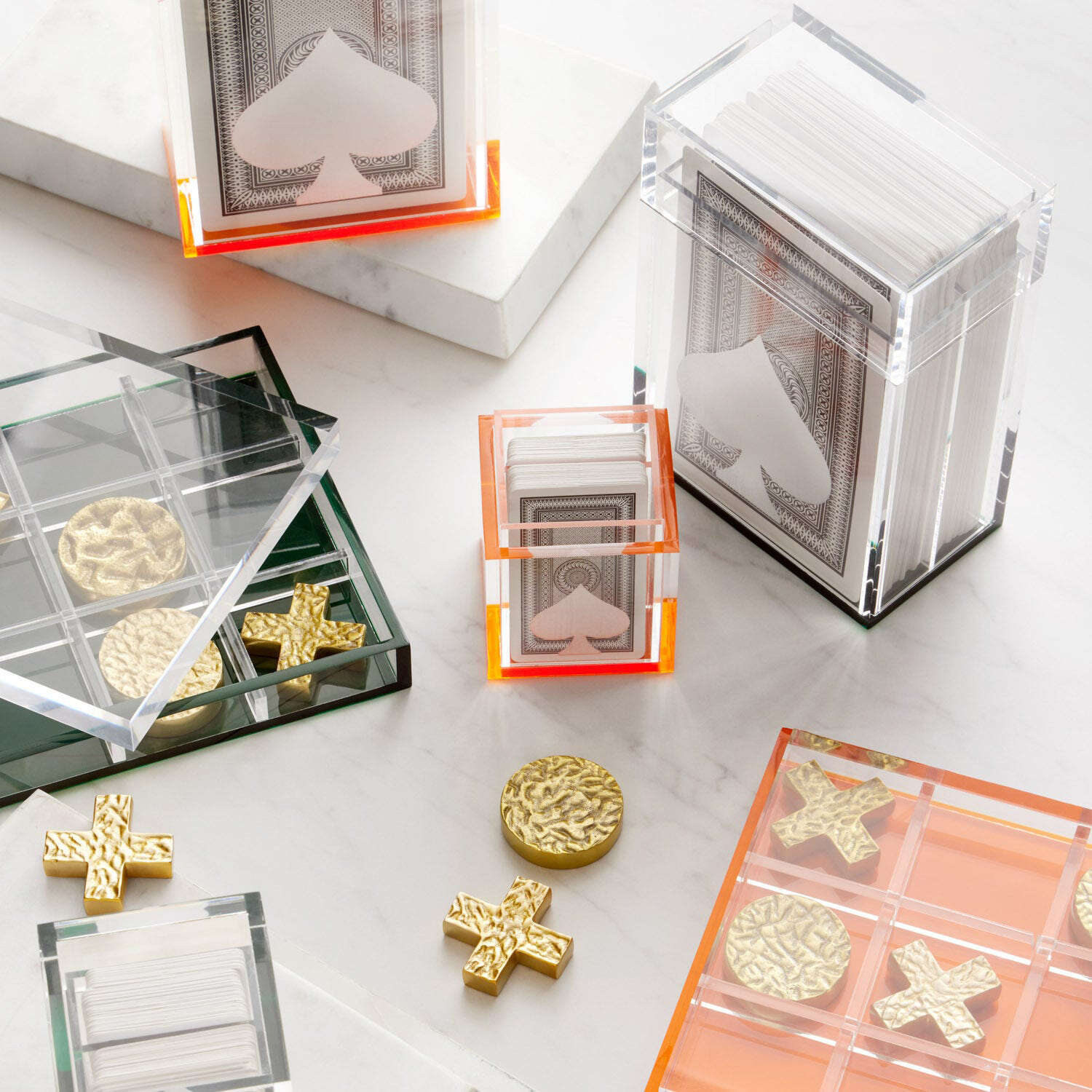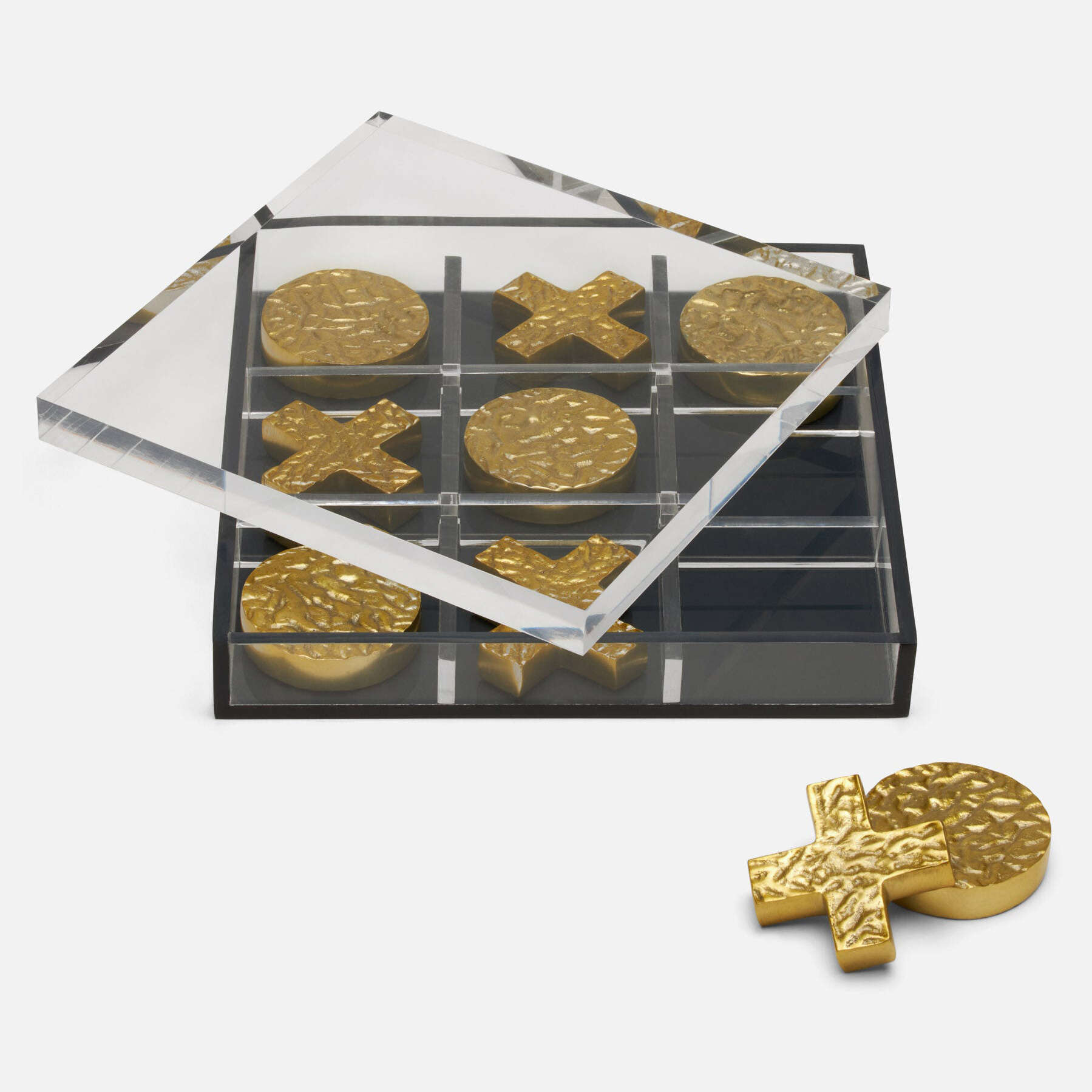 Tic tac toe gets a glow-up with textured gold pieces and cool acrylic bases.