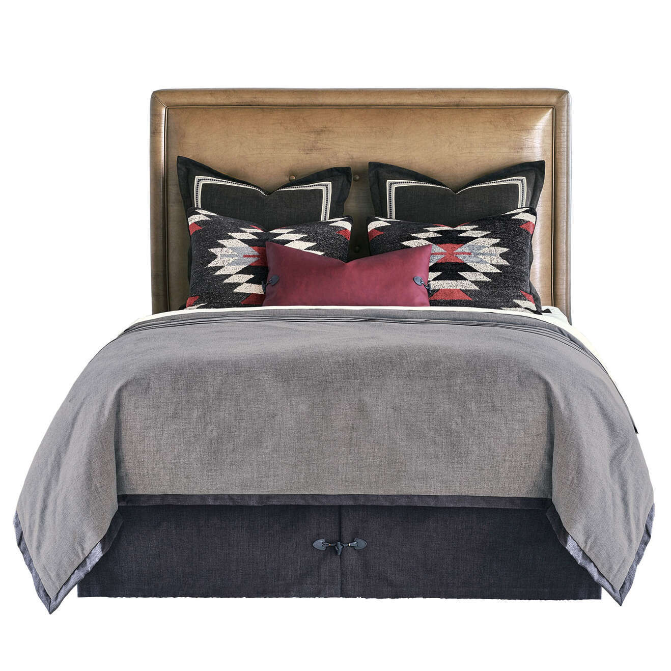 Elevate your mountain lodge to new peaks with Andes. This collection features a stunning Southwestern kilim pattern, accented with woven textures, faux-leather, and lasercut details. A tailored duvet cover and bed skirt bring a modern edge to cozy pillows, in rich shades of red and charcoal.