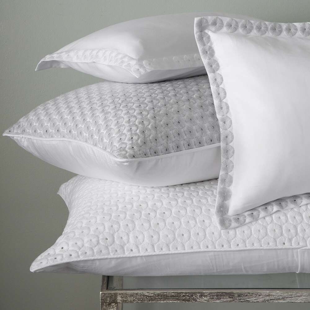 Inspired by design and created to perfection, Angele has been embroidered to look like no other. The soft emboirdery is offered in white or silver on a 300 thread count cotton sateen.
