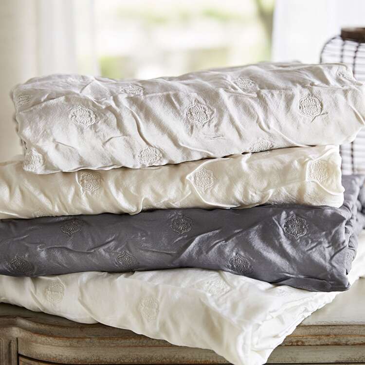 This stunning cover consists of two layers of luxurious silk woven together to enclose finely woven wool. Anna is lightweight, warm, and absolutely beautiful.