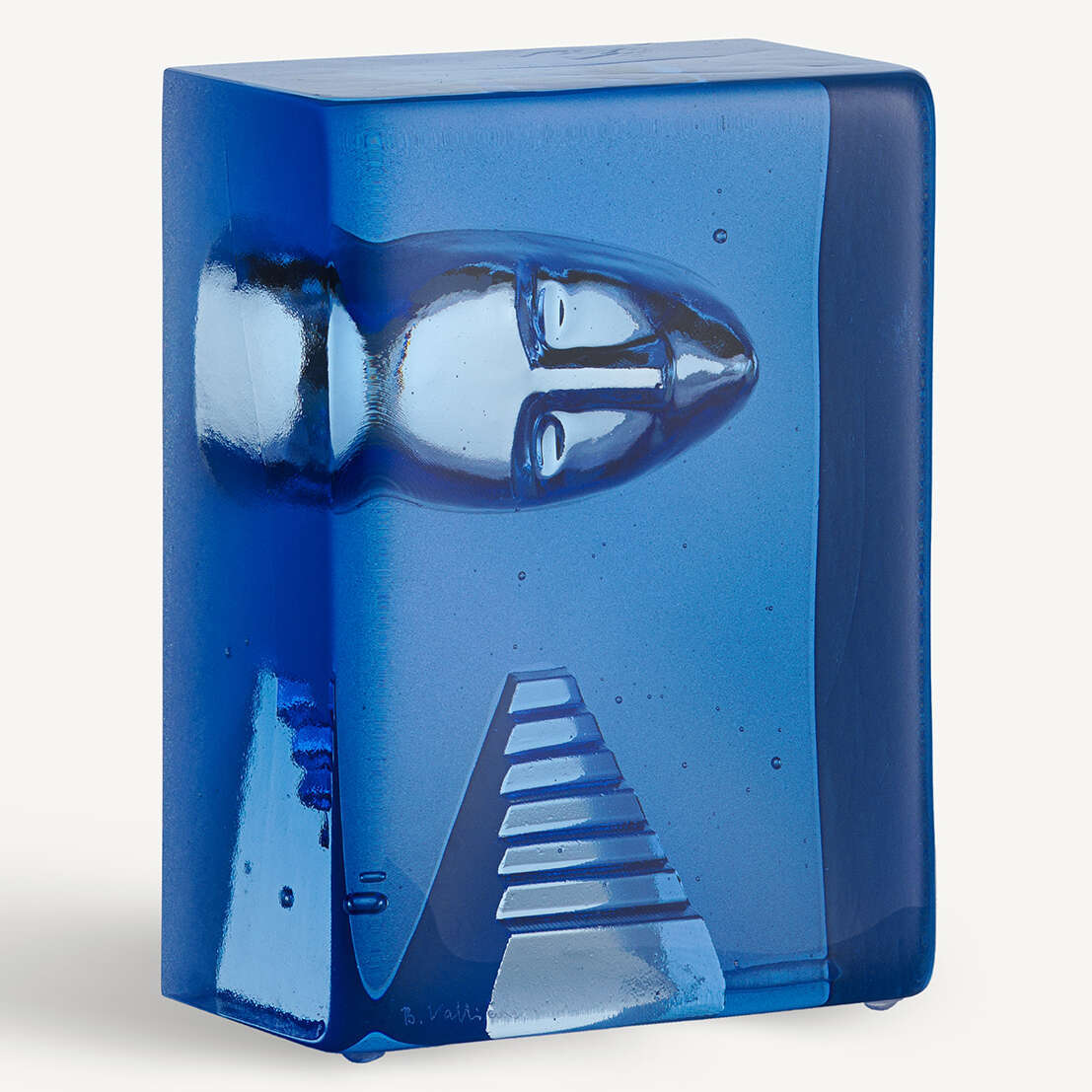 The renowned Swedish glass artist Bertil Vallien has created Azur Stairs. It is an exclusive art object in glass, cast in a charcoal mold, with an imprint of a face above a staircase. Both motifs are recurring in his work, often as details in his magnificent boats of glass. The object is handmade at Kosta Glassworks in Sweden and is part of the Kosta Boda Artist Collection.