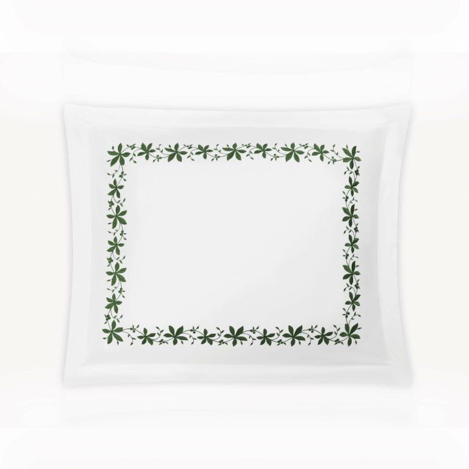 Vibrant, dancing floral vines embroidered on light, silky Bergamo Giza Egyptian cotton percale add a pop of character to any room.