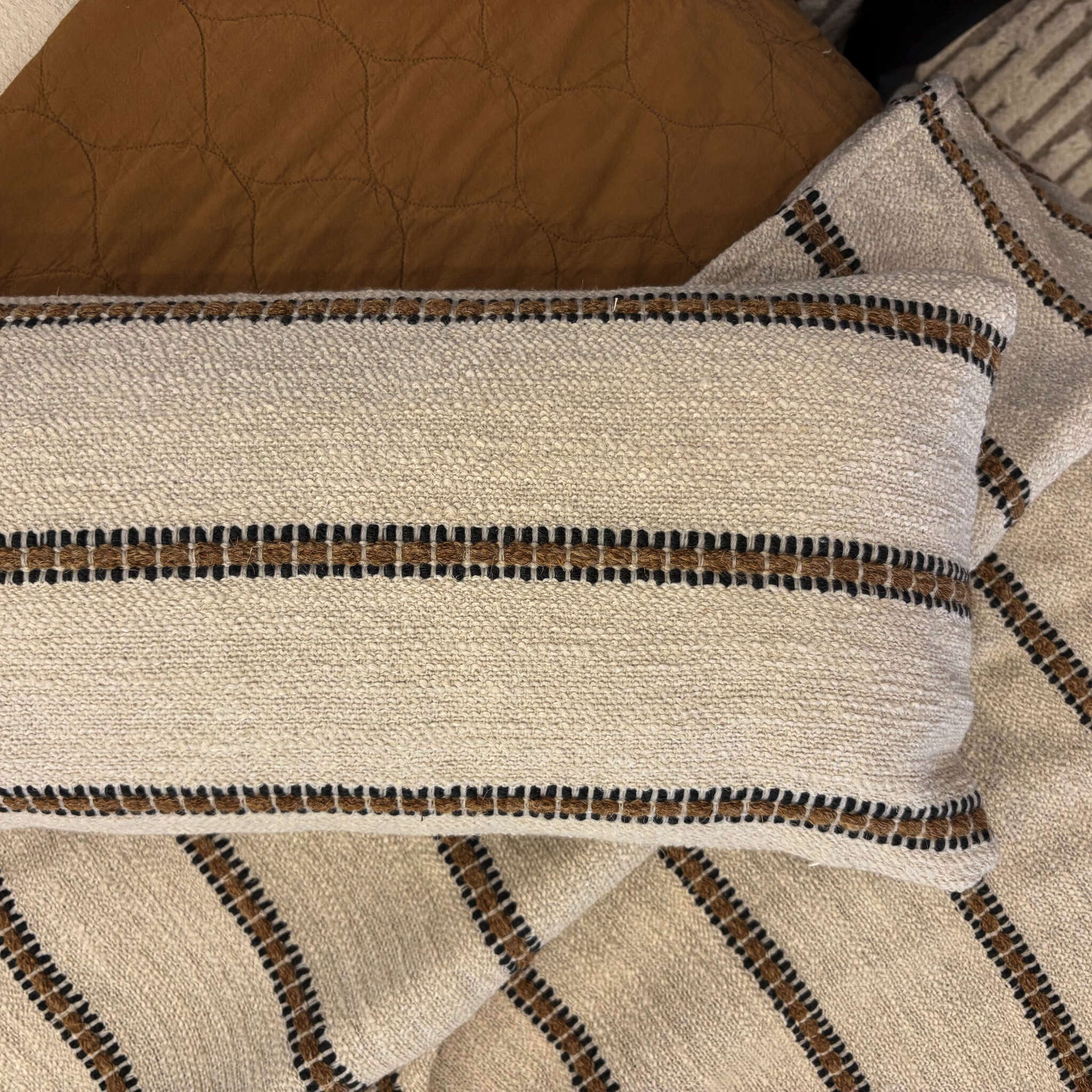 Callum is a handsome wool blend stripe. As one of our fashion fabrics, Callum can be purchased by the yard, or made to order products like throws,shams and decorative pillows.
