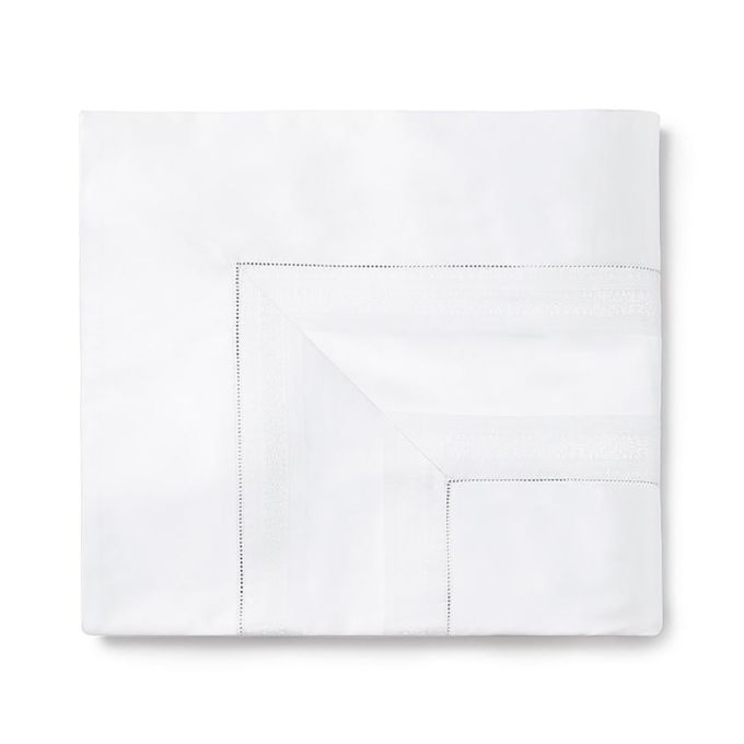 A celebration of a lavish and comfortable life, this refined sheeting has the look of luxury and the feel of opulence. An intricate jacquard appliqué design is nestled between two rows of precise hemstitching to create a refined border along the edges of our Ne Plus Ultra Milos solid sateen.