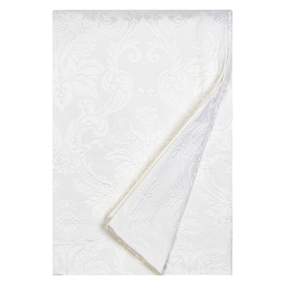 A large Jacobean floral design graces a rich, 100% cotton, Italian matelasse that is finished with a self hem.
