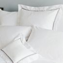 Duvet Covers: 2" flange. White base with Capri trim. Back button band.