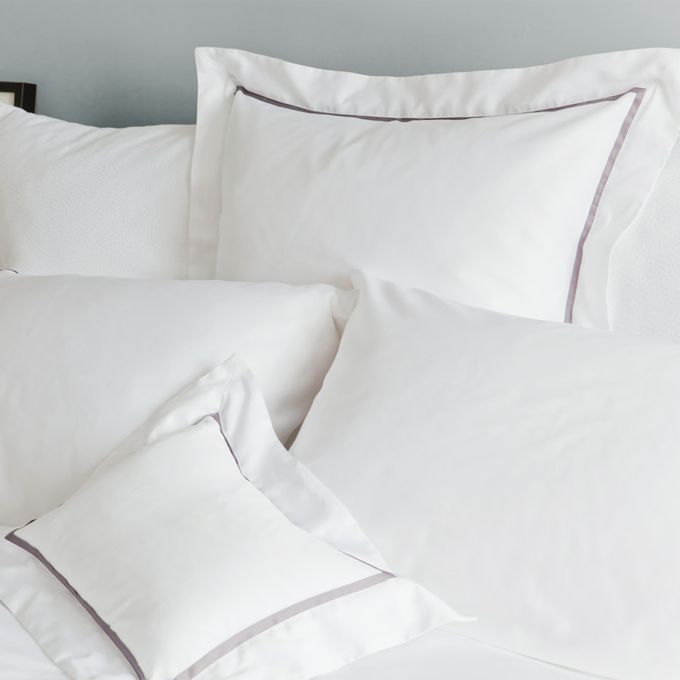 The white base for this bed linen design is complemented by an amazing choice from 90 Capri colours for the 3/8" flat trim. See our 90 Capri colours page for options.