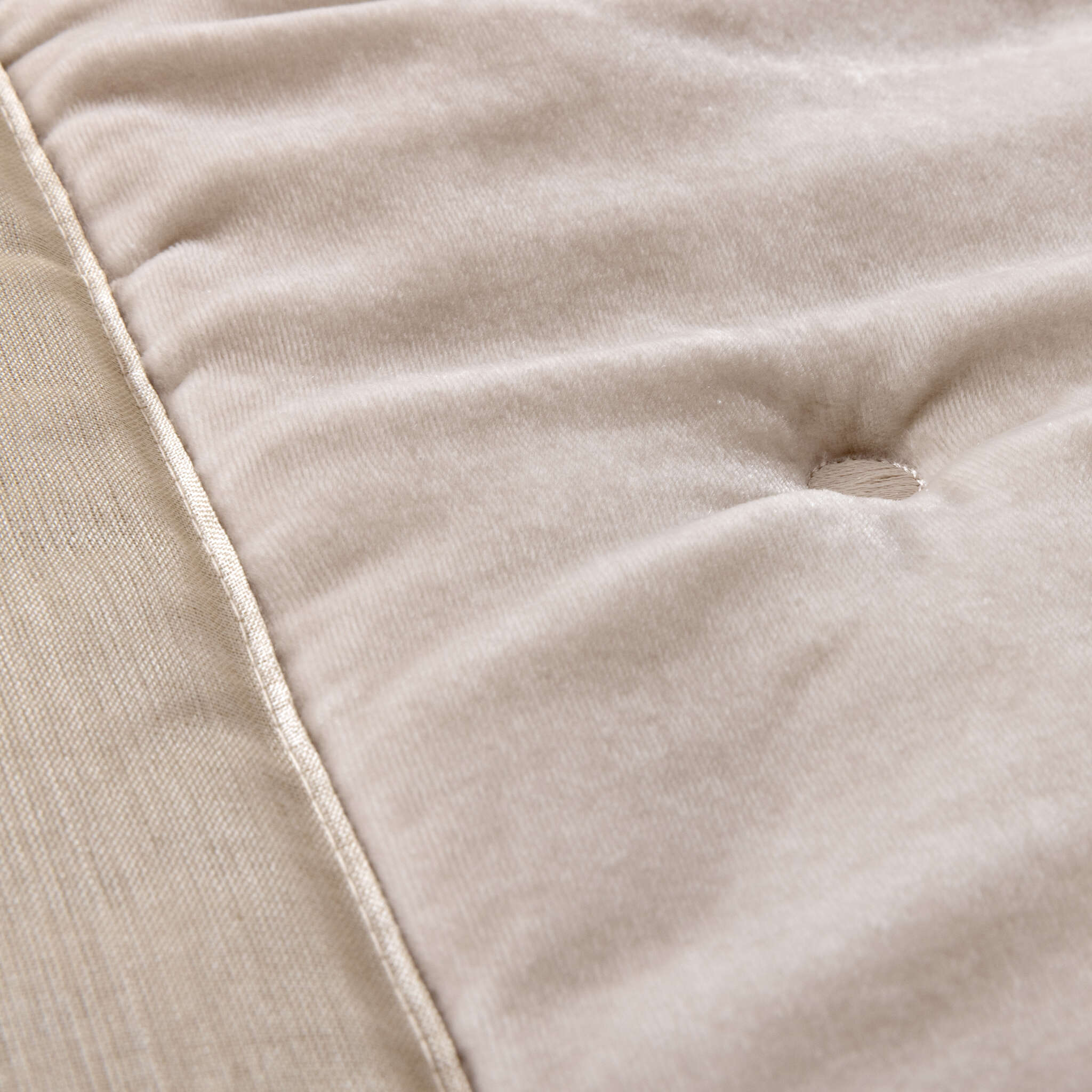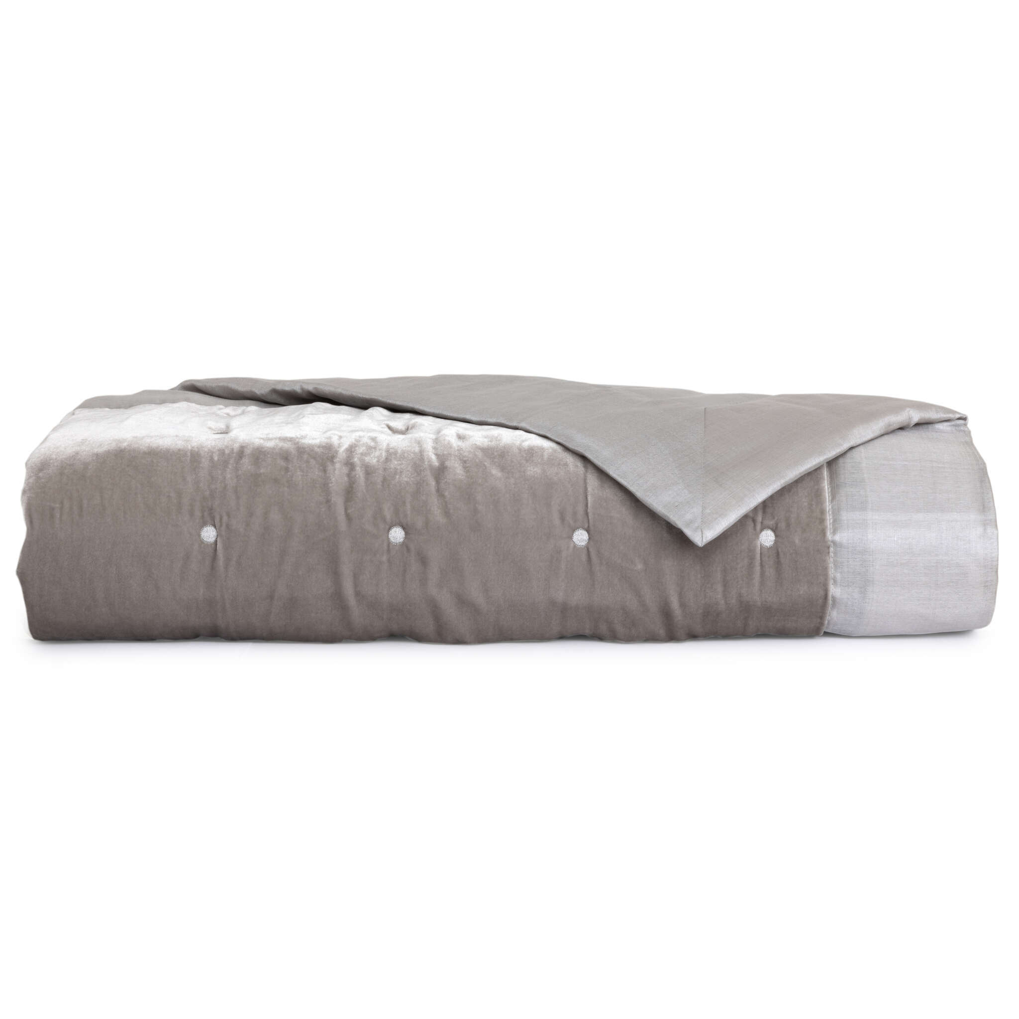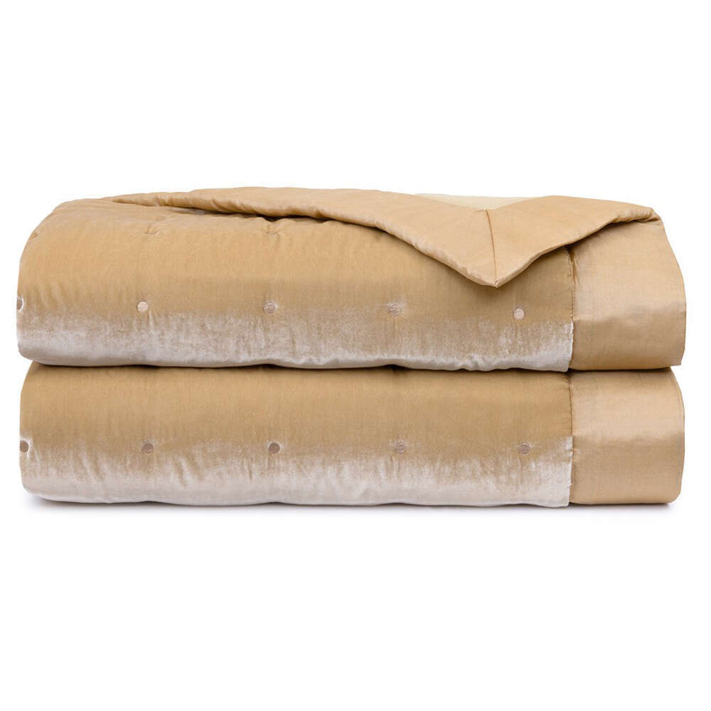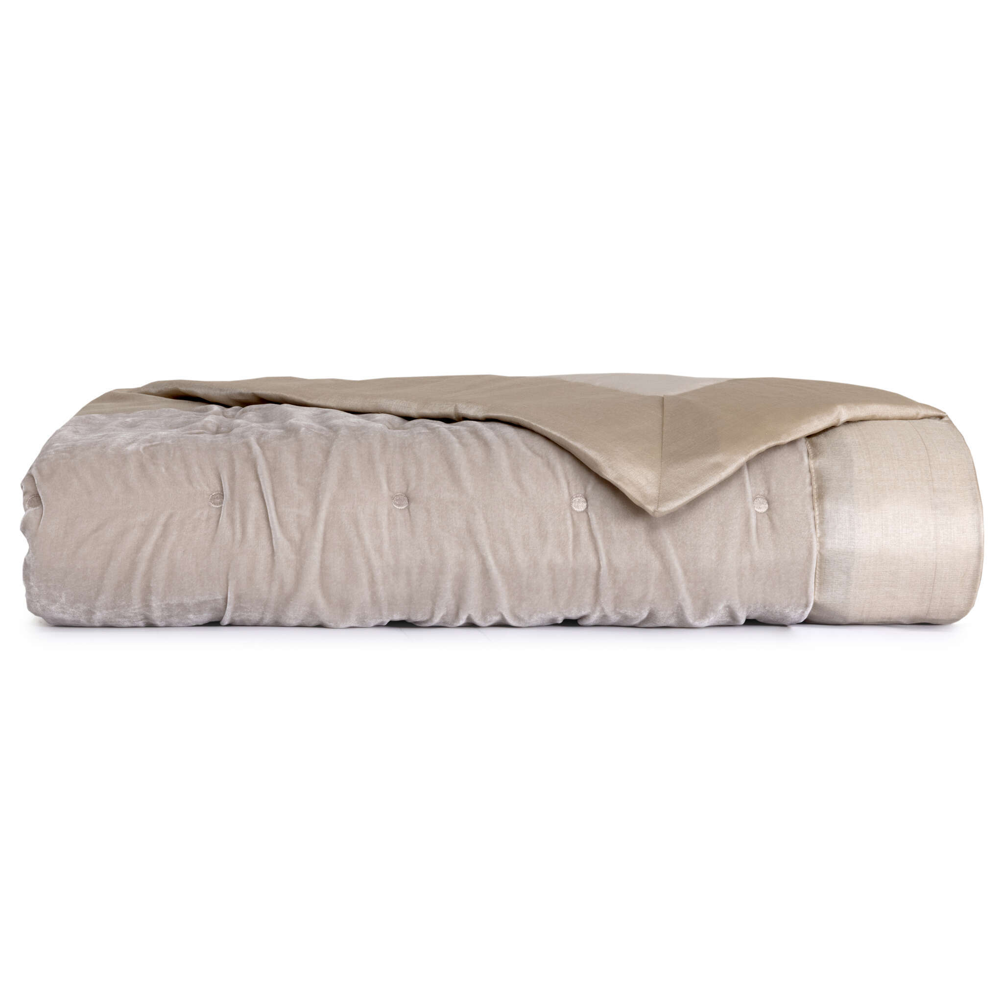 A sumptuous velvet and silk bedcover with dot stitching and a silk border. Available in a variety of colours to complete your bedroom style.