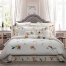 Duvet Cover: Knife edge and hidden button closure. Embroidery spread all over on the duvet.