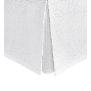Bed Skirt: diamond-patterned pique made from easy-care fabric, finished with box pleats, a 1" plain hem and decking panel to be placed between mattress and box spring.