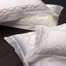 Sham: Approximately 3-inches mitered flange on shams; 2-inches mitered flange on boudoir; French-flap closure; 4-Side Embroidery.