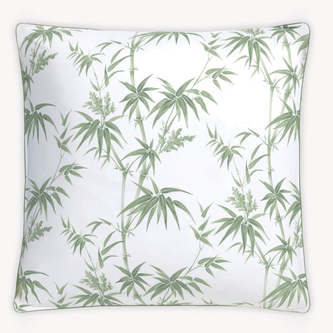 Tropical bamboos sweep across Dominique, a lively design inspired by Schumacher’s Arita floral. The large-scale, airy botanicals add whimsy to any space and are printed in four earthy colors. The design is printed on our 500 thread count Luca Egyptian cotton percale and is finished with a contemporary corded edge.