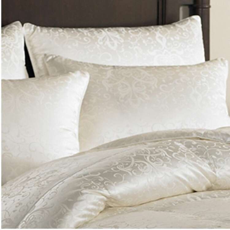 Thread Count: 434, Material: 100% Silk Jacquard, with Flowering Vine Pattern.