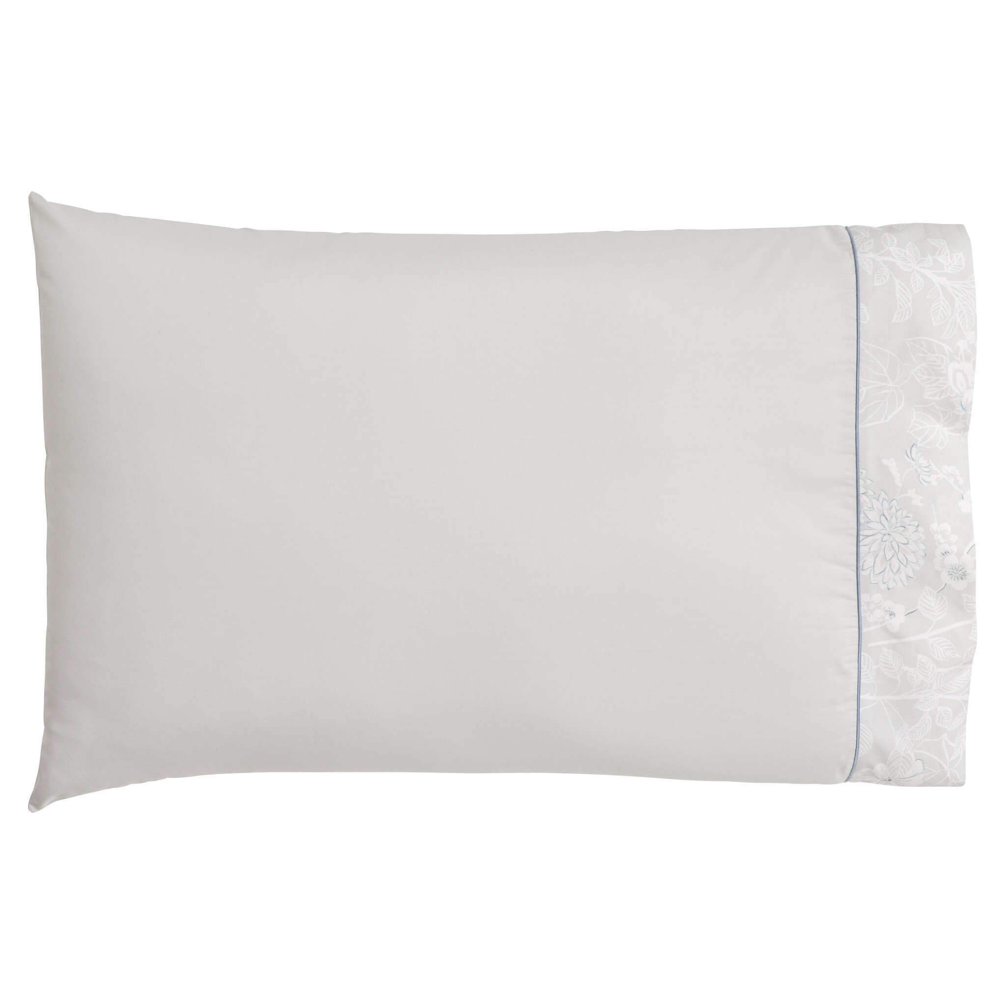Pillowcase & sham: contrast bourdon stitch. Flanges 1,18", US Pillowcase: flange with all-over pattern insert on the opening side 3,94".