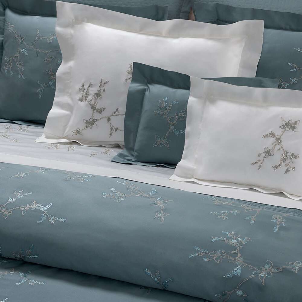 Duvet Cover: Knife-hedge and hidden-button closures. All over on top of the bed.