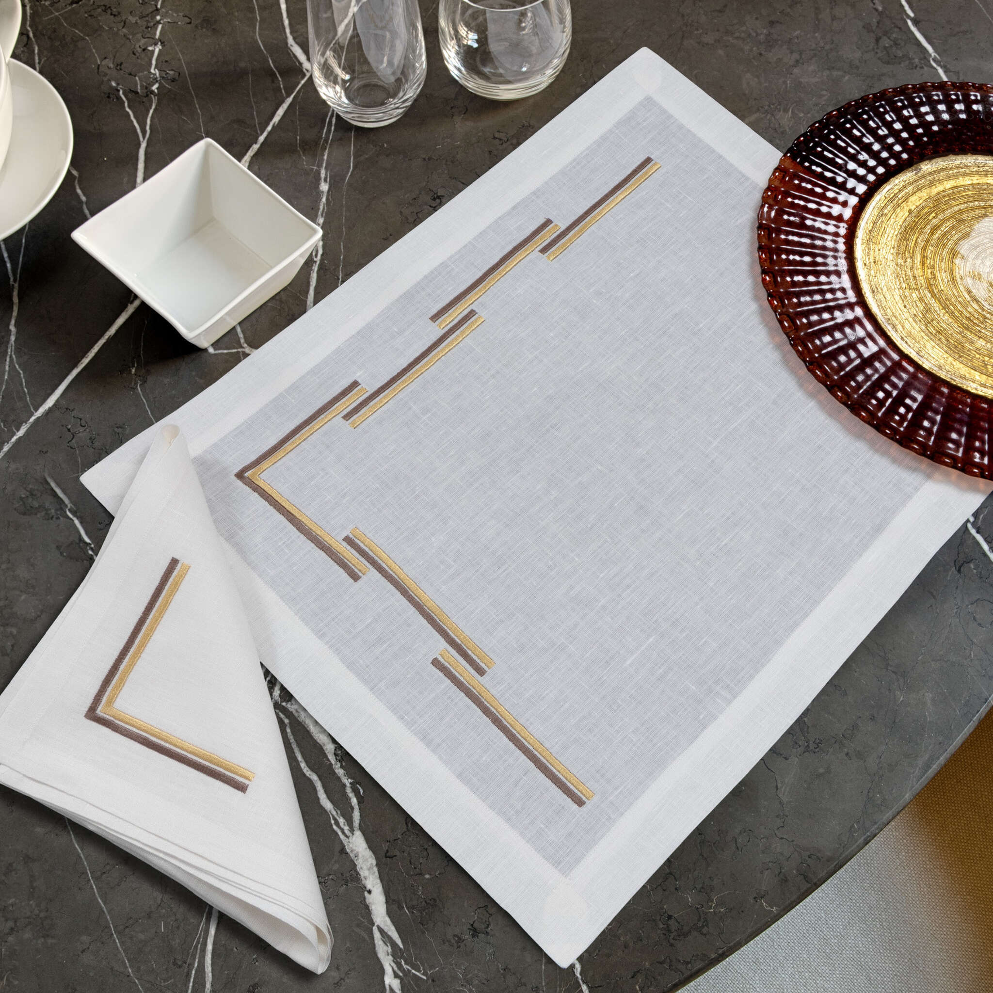 The Gabrio Collection’s two-tone effect amplifies the beauty of any combination. A modern embroidery whose straight lines, embroidered in satin stitch, follow each other to form a frame on a white background of fine cotton. Gabrio represents contemporary Tuscan artisanal skills, where the ancient art of embroidery has always embellished household linens and furnishings.