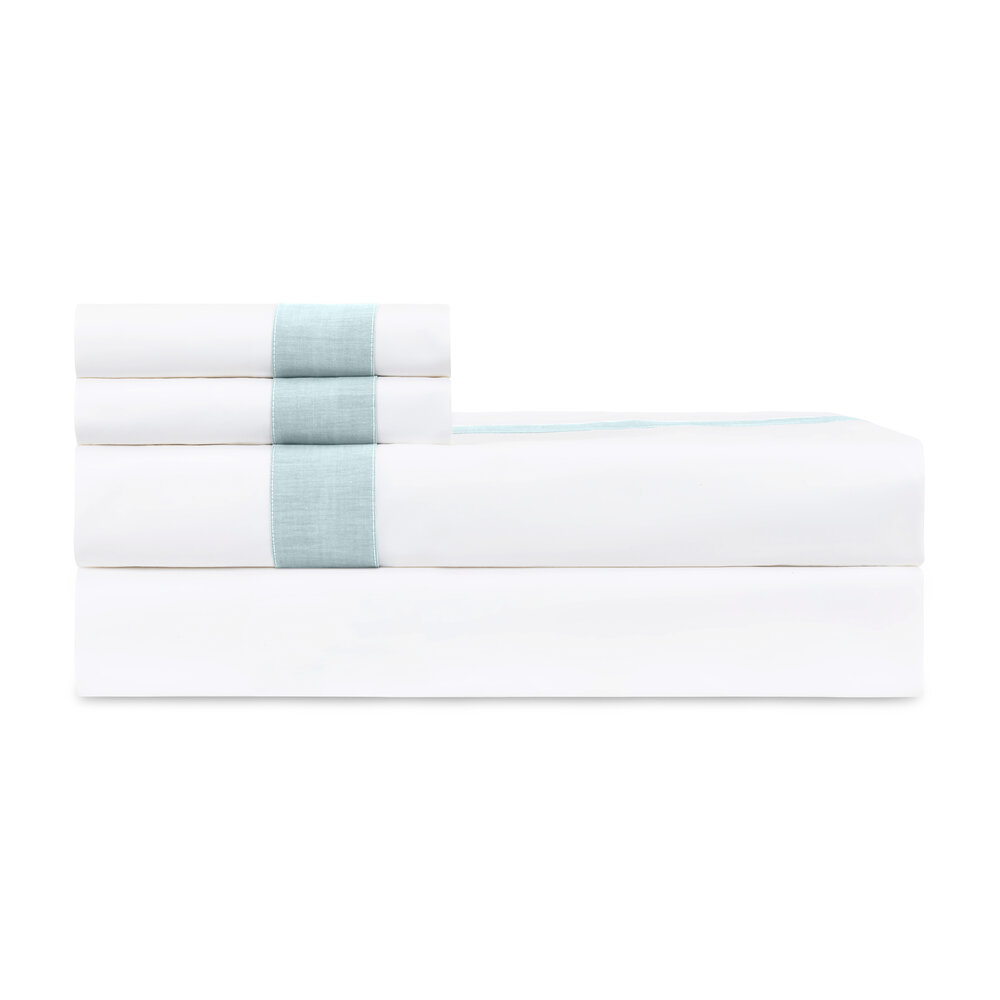Gaia Flat Sheets are designed your choice of Perla White body, with a 2” Gaia inset along the Euro return (gai1) or allover Gaia, with a plain hem along the Euro return (gaa1).
