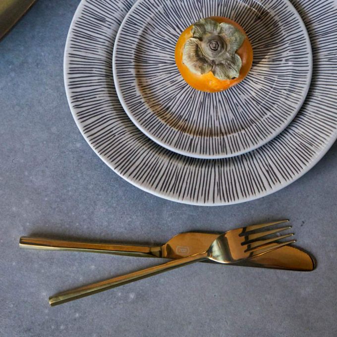 Modern, minimal, and geometric. Our Gwen collection features hexagonal stems, an unexpected detail that takes these simple sets to the next level. Complements any tabletop aesthetic.