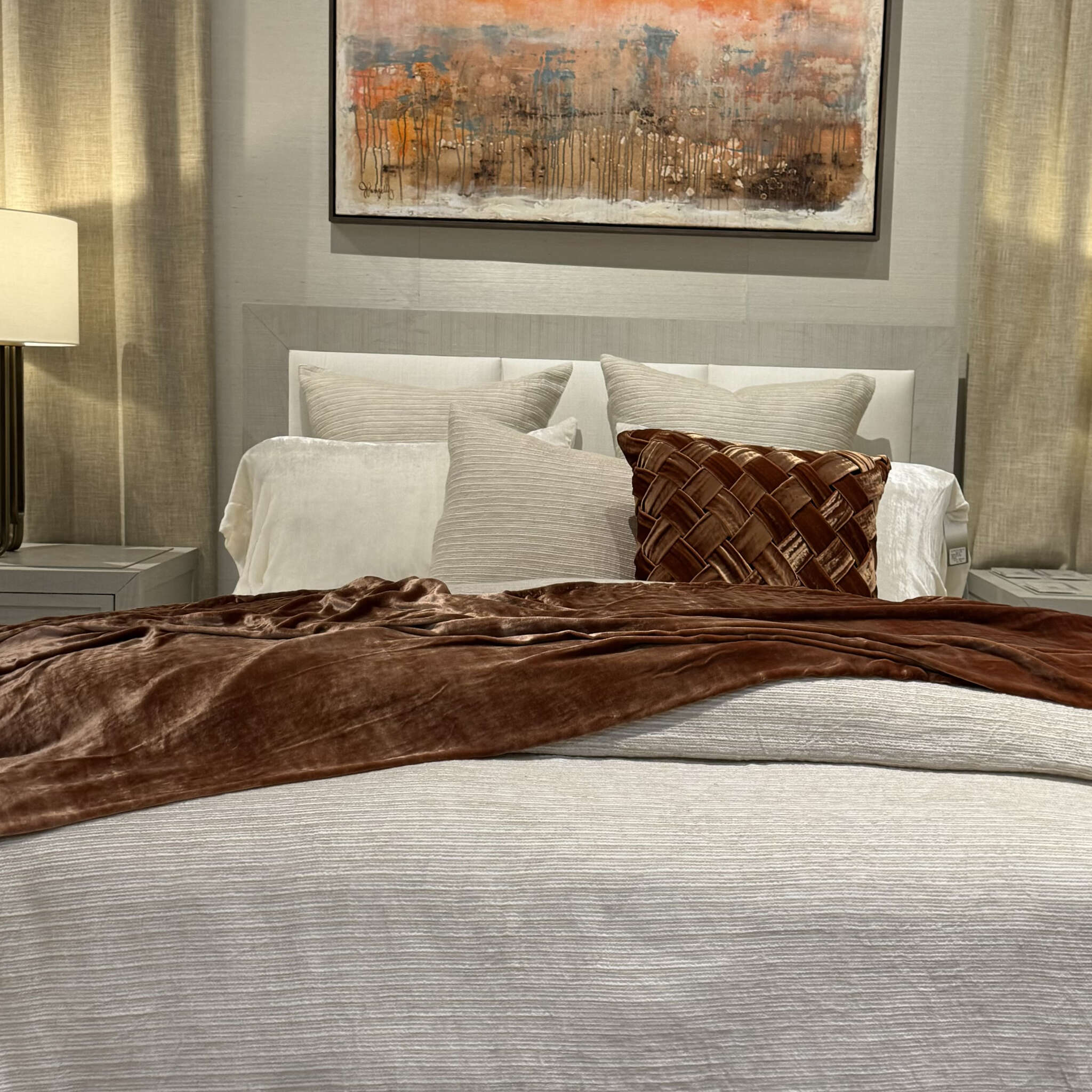 Hawthorne linen duvet covers and shams feature a lightweight textured linen front with cool white percale backing.